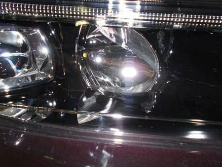 ハイビーム側がハロゲンランプ(電球)のためLEDランプに。