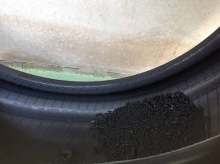 写真のようにタイヤの内面が損傷してしまい修理ができなくなって