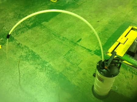 手動のポンプを使って古いオイルをきれいに抜き取ります。こうする