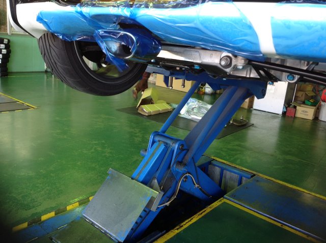 その後マフラーを取り出し、新しいマフラーを取り付け、排気ガスの漏れの確認です。