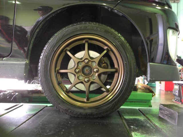 本日はスバルのプレオ、ホイール交換作業を行いました。