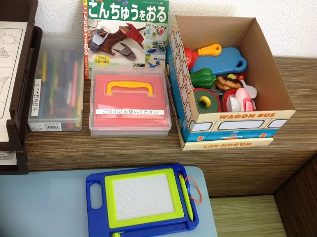少しでも待ち時間の暇つぶしとして雑誌を追加してお子様向けに折り紙など置いてみました。