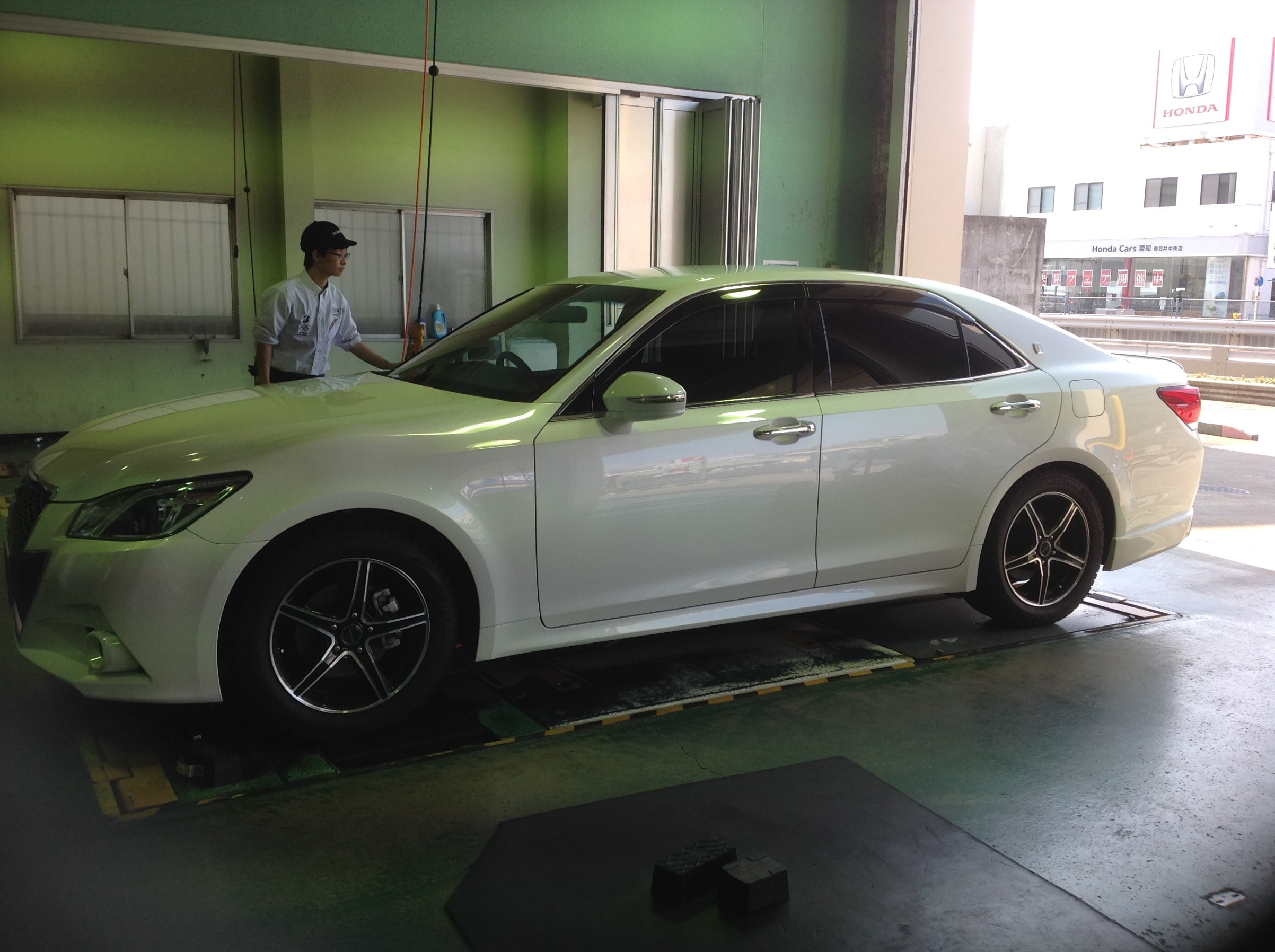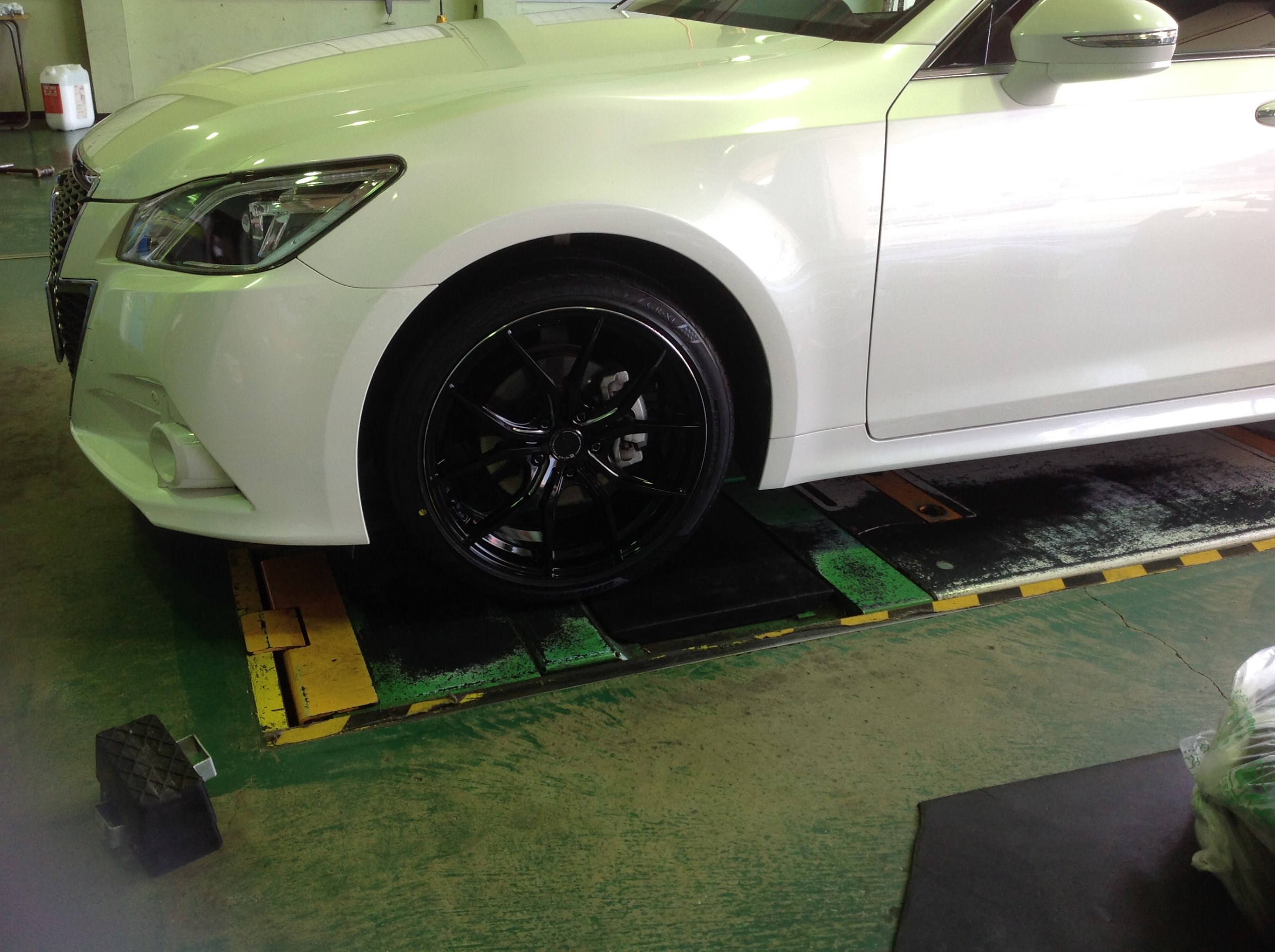 本日はご予約いただいていたI様のクラウンのタイヤとホイールを取付させていただきました。