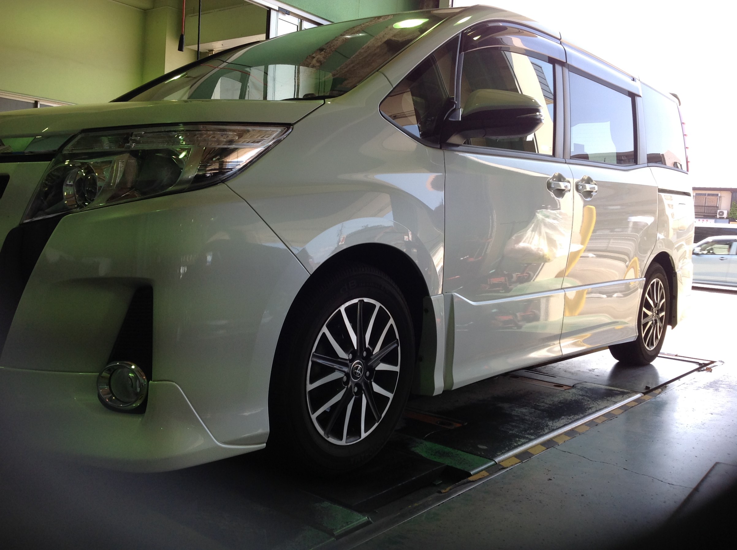 本日トヨタのノアに新品アルミホイール・新品タイヤ・ロックナット・空気圧センサーの取り付けをさせていただきました。