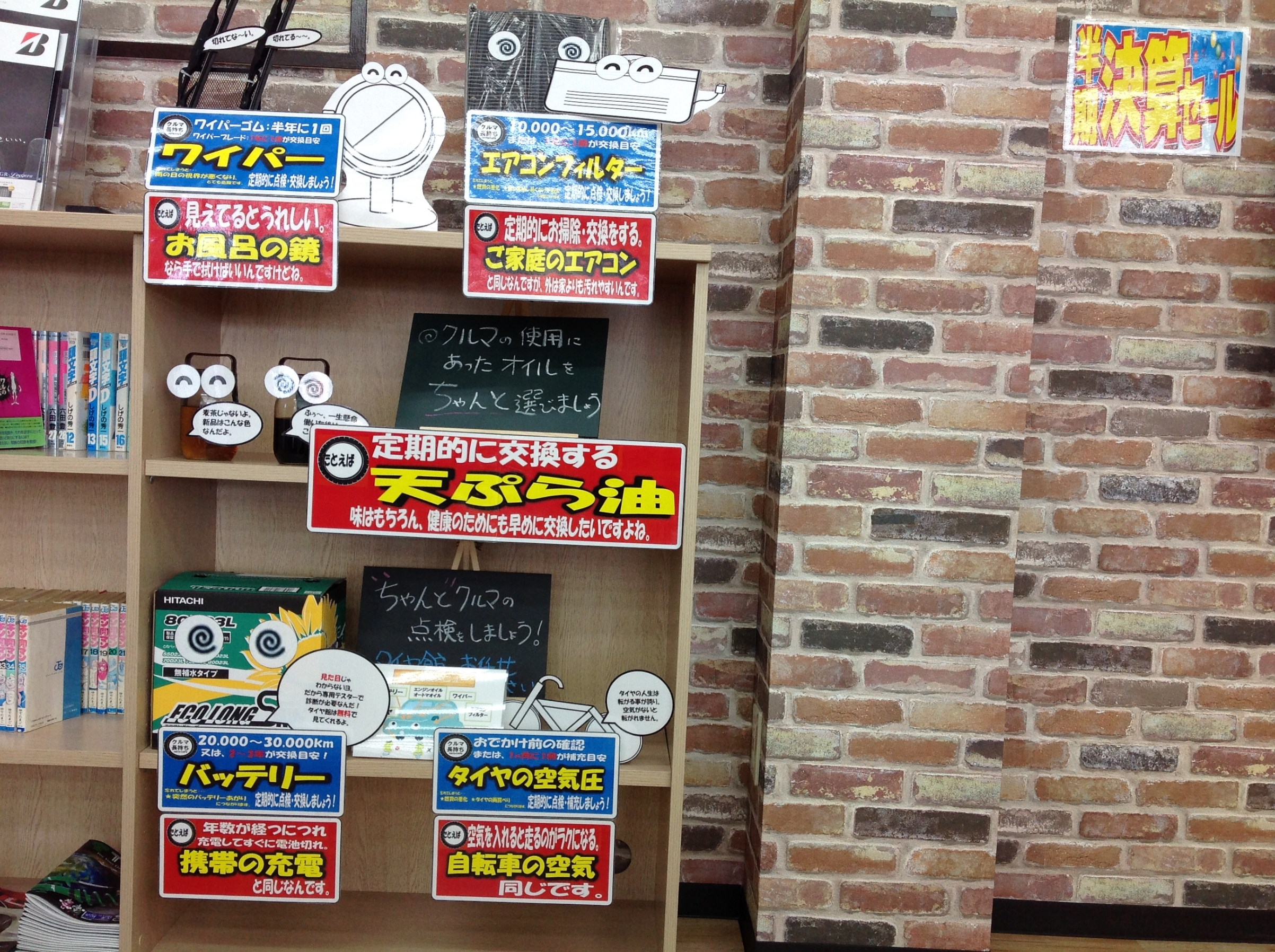 他にもバッテリーやオイルなど、いまいちよくわからない・・・。