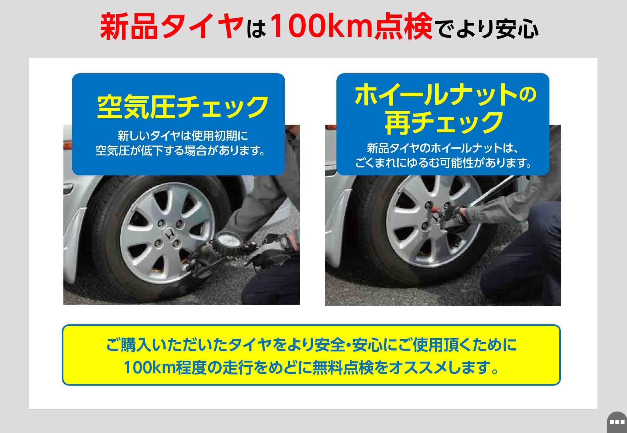 新品タイヤ交換後の無料点検を実施しております(^^)