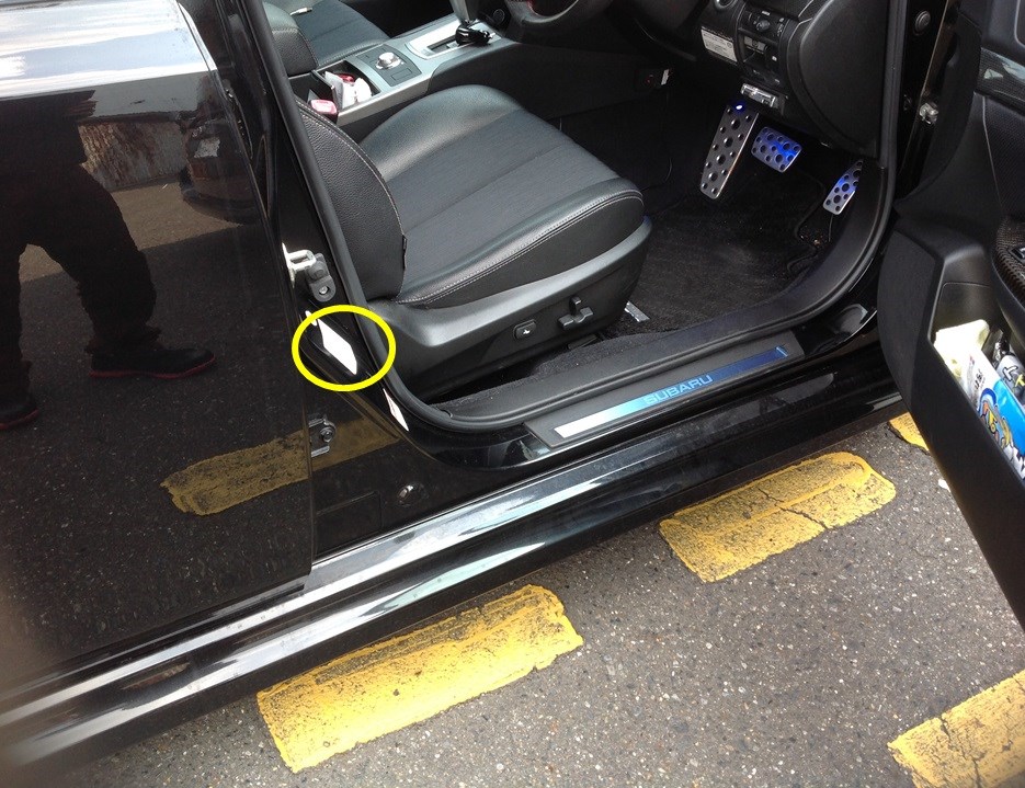 運転席側ドアの黄色丸部分に記載があります。
