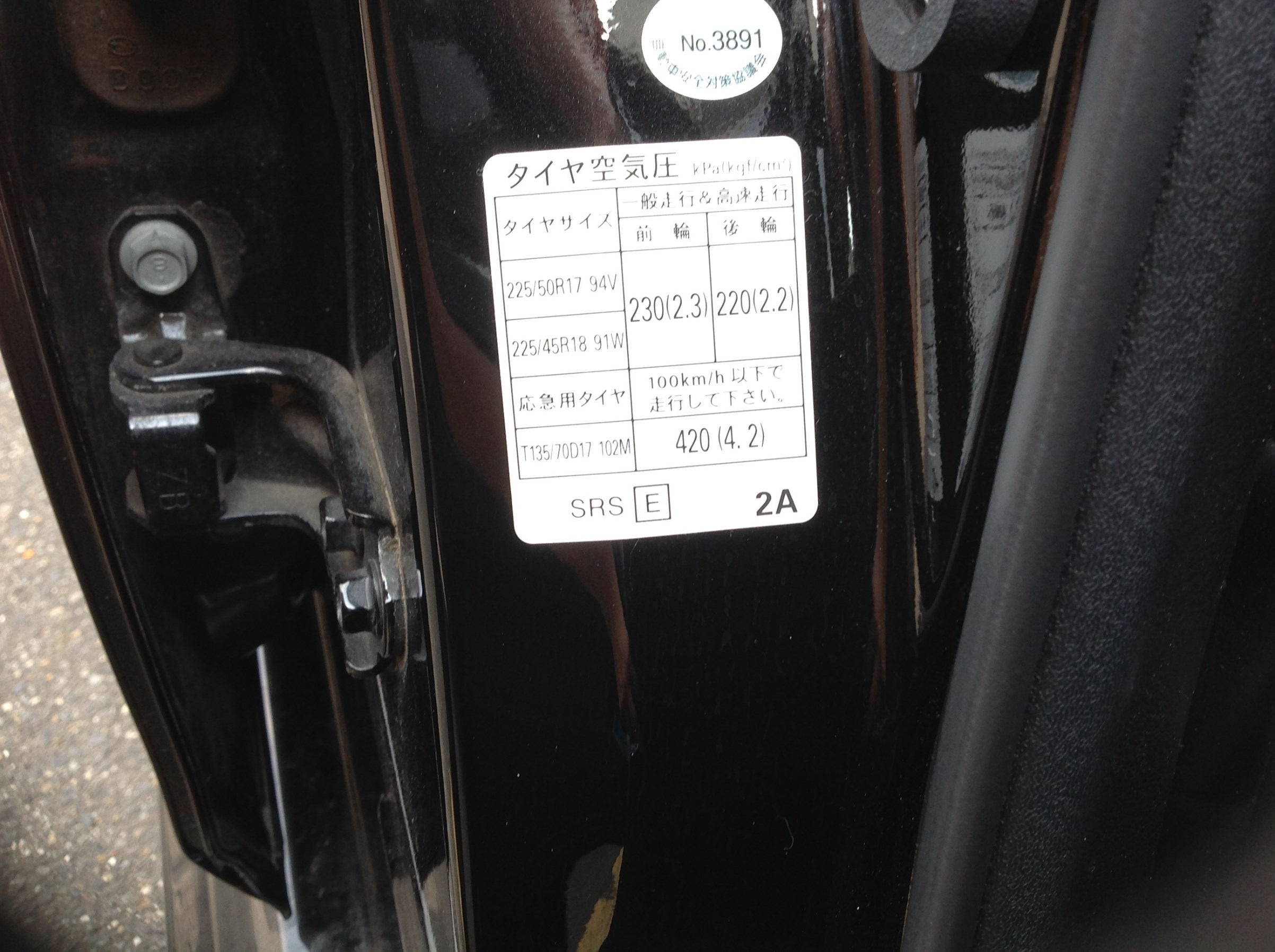 お車の空気圧は、国産車の場合