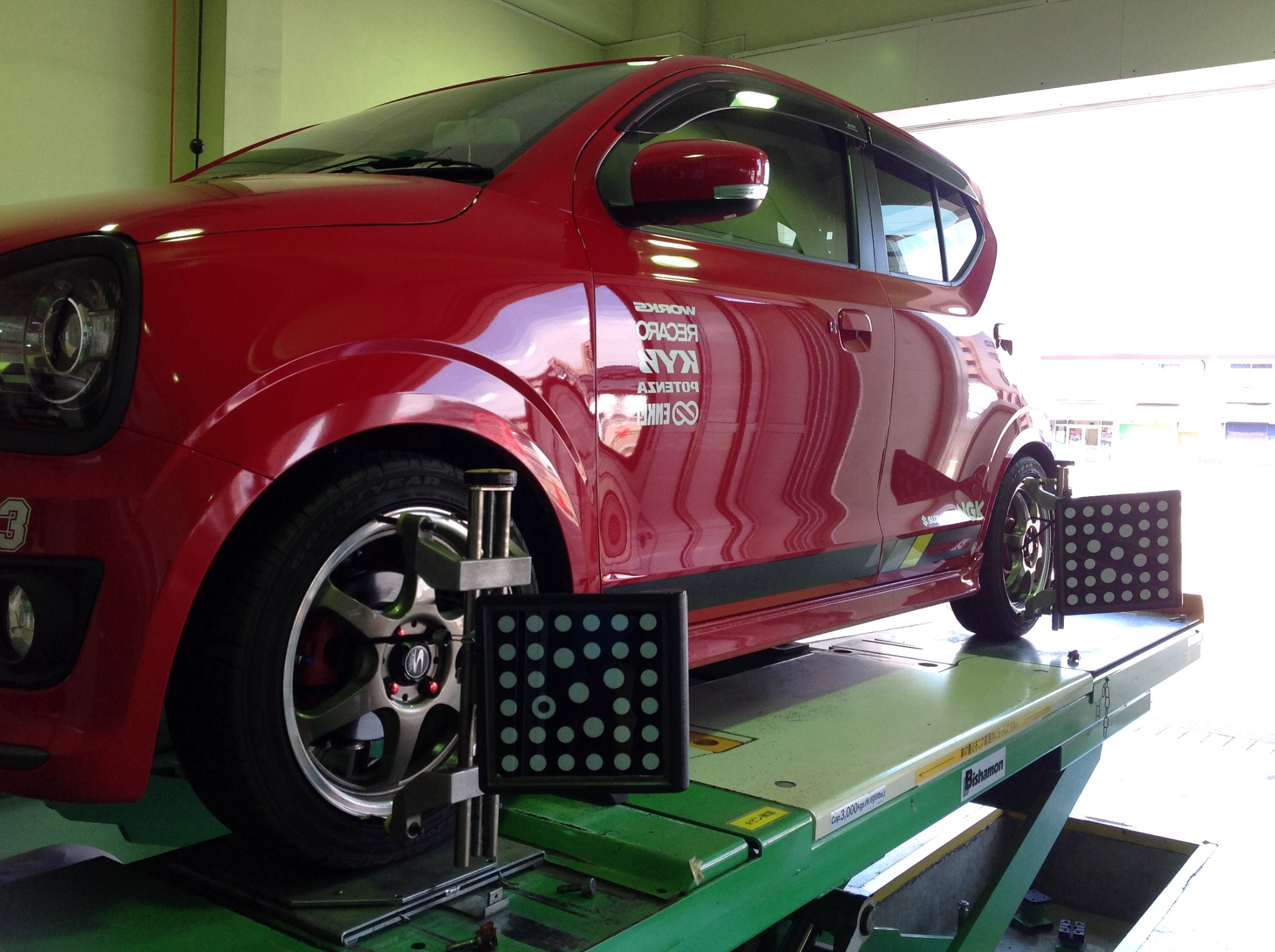 本日、お電話で予約頂いておりましたアライメント作業を行わせていただきました。