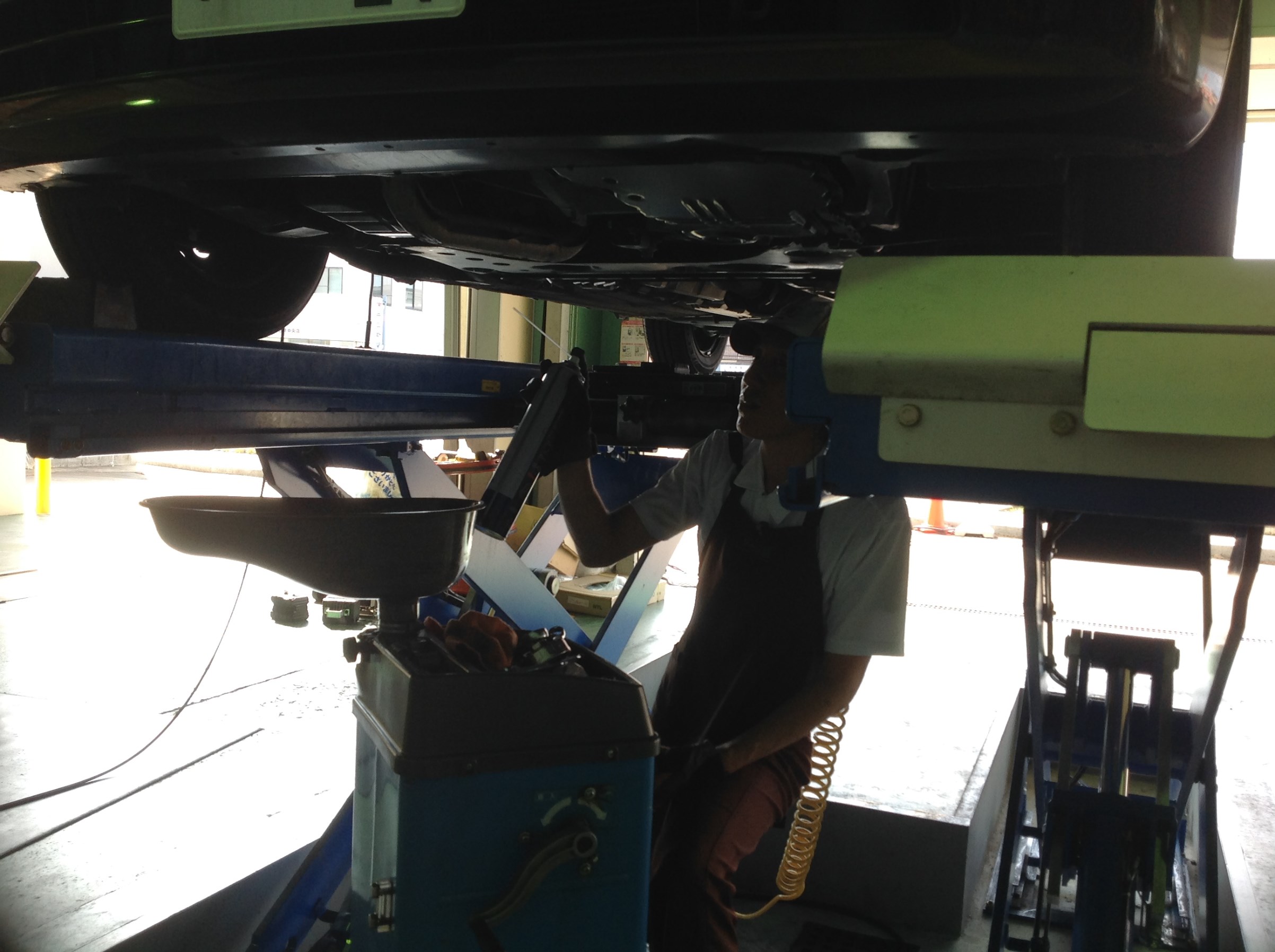 当店でのオイル交換は、ほとんどのお車で下からオイルを抜きます。
