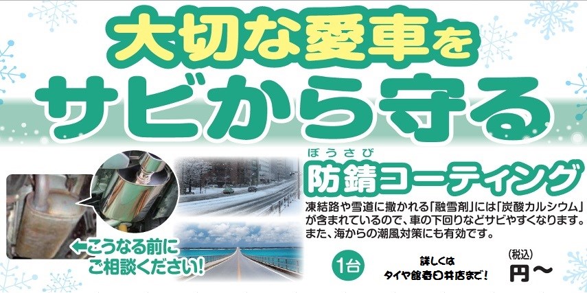 下廻りの全体をできる全体コースと、錆びやすいマフラーだけをするマフラーコースがあります。
