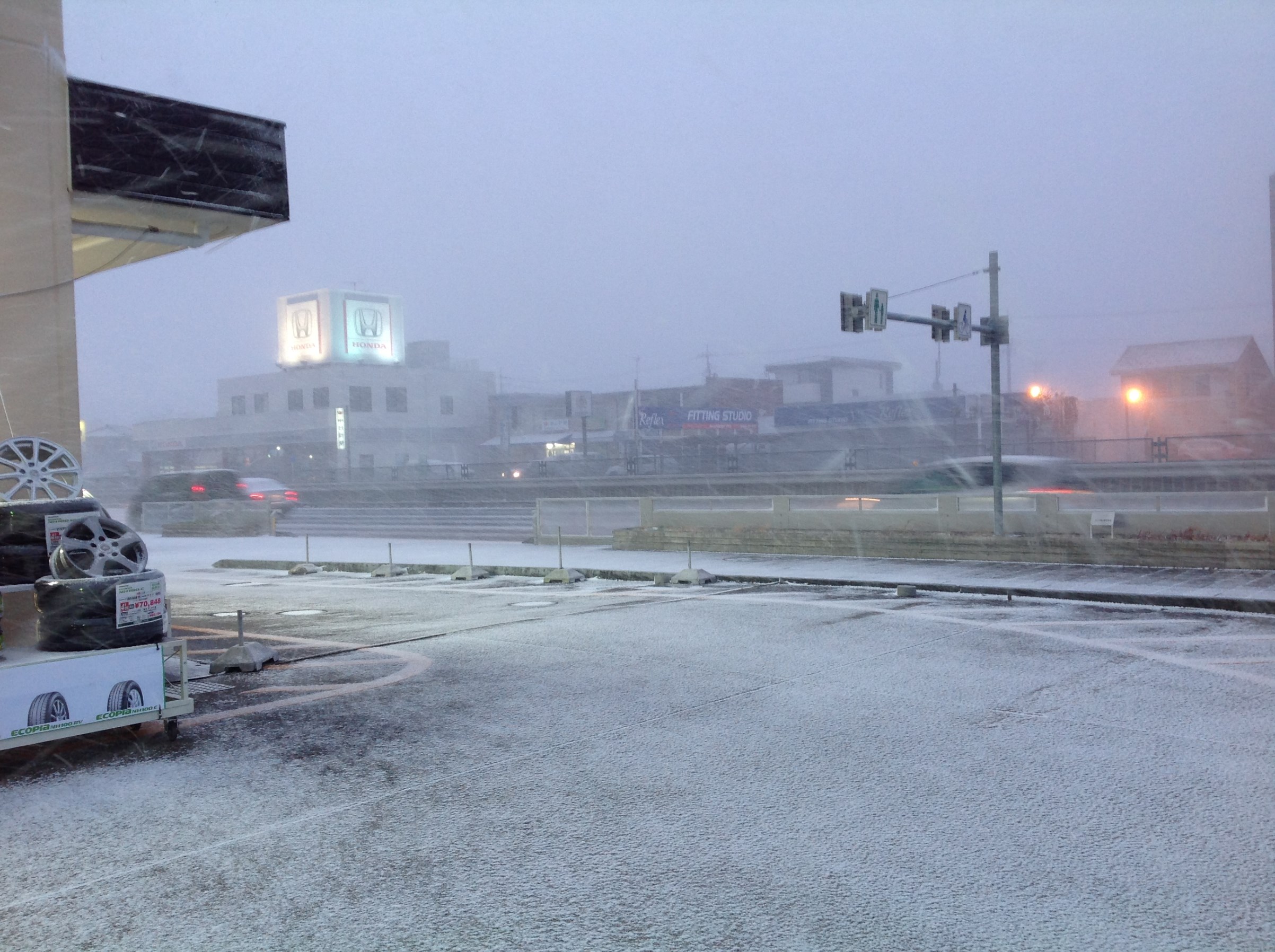 お店のピットの前はガリガリのカチカチに凍っていて滑りまくりです。