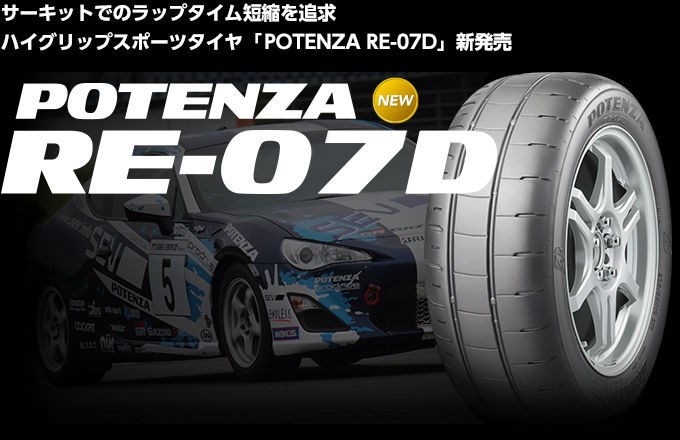 【ポテンザ RE07D】 ポスト 「POTENZA RE-07D」は、新たに専用開発されたコンパウンド、形状、パタン、構造を採用。接地性の改良によるグリップ力の向上とサイド剛性の最適化により、DRY性能とWET性能をさらに高いレベルで両立することで、サーキットでのあらゆる場面に対応可能なスポーツタイヤ。 「GAZOO Racing 86/BRZ Race」における「プロフェッショナルシリーズ」の競技規定を満たしており、同レースでも使用可能。 カテゴリ:商品情報 タイヤ関連