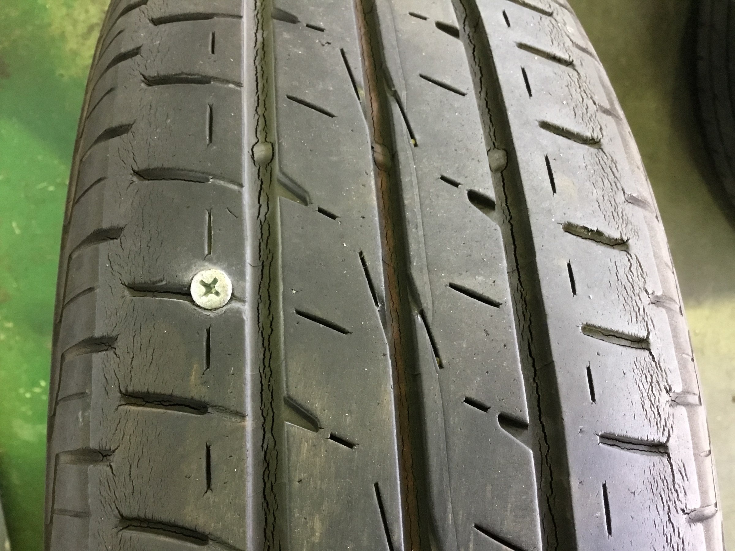 よく見るとタイヤの溝の中もひび割れがみて分かりますのでパンク以外の他の3本も同時に交換させて頂きました。