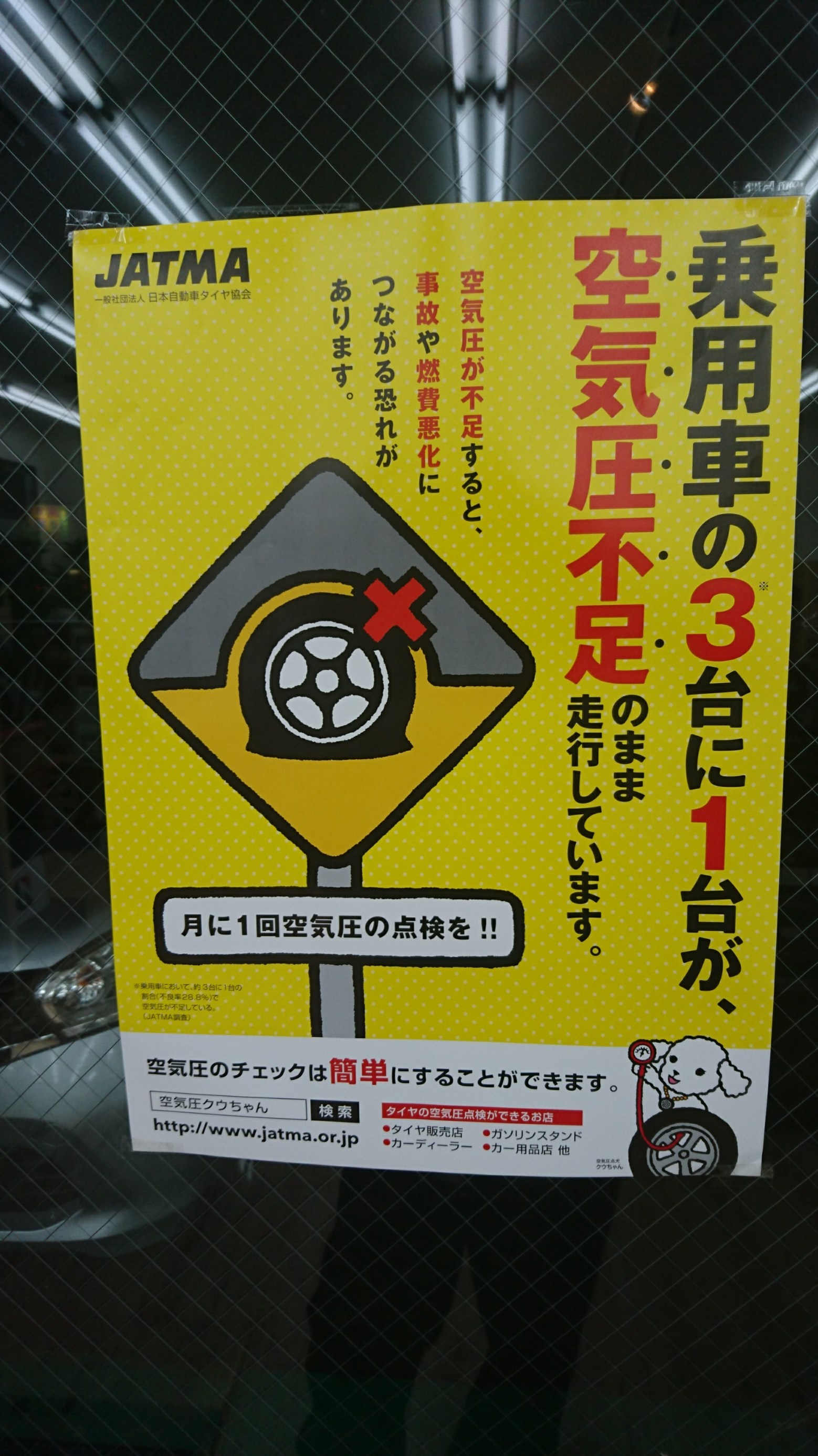 タイヤ館では、タイヤの空気圧、溝の状態等