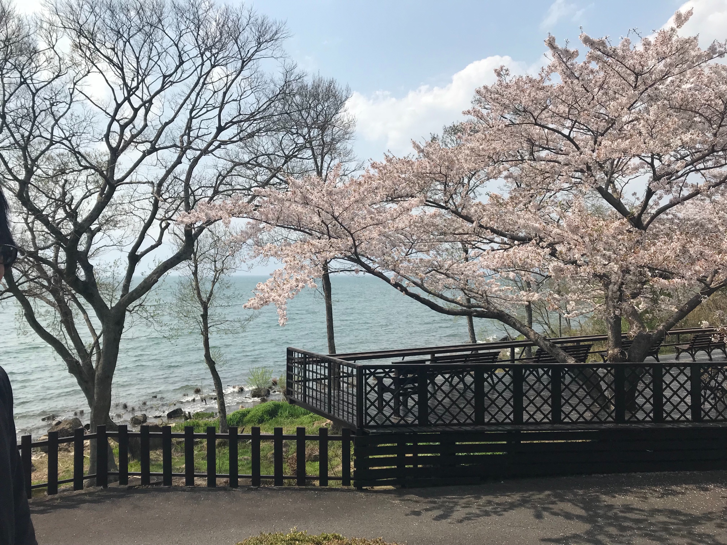 琵琶湖のほとりでバーベキューをして、桜をみながら一休み・・。