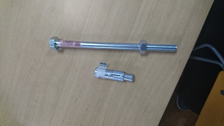 下側がコンクリートに打ち込むアンカーで上が看板を固定するボルトです!!