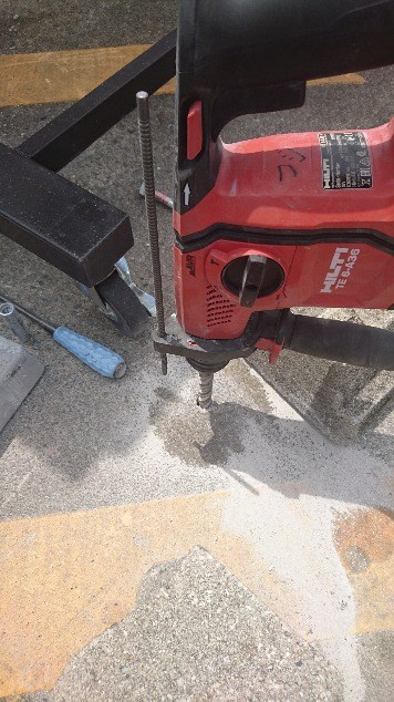 ギュルギュル~と穴をあけてカットアンカーを打ち込み