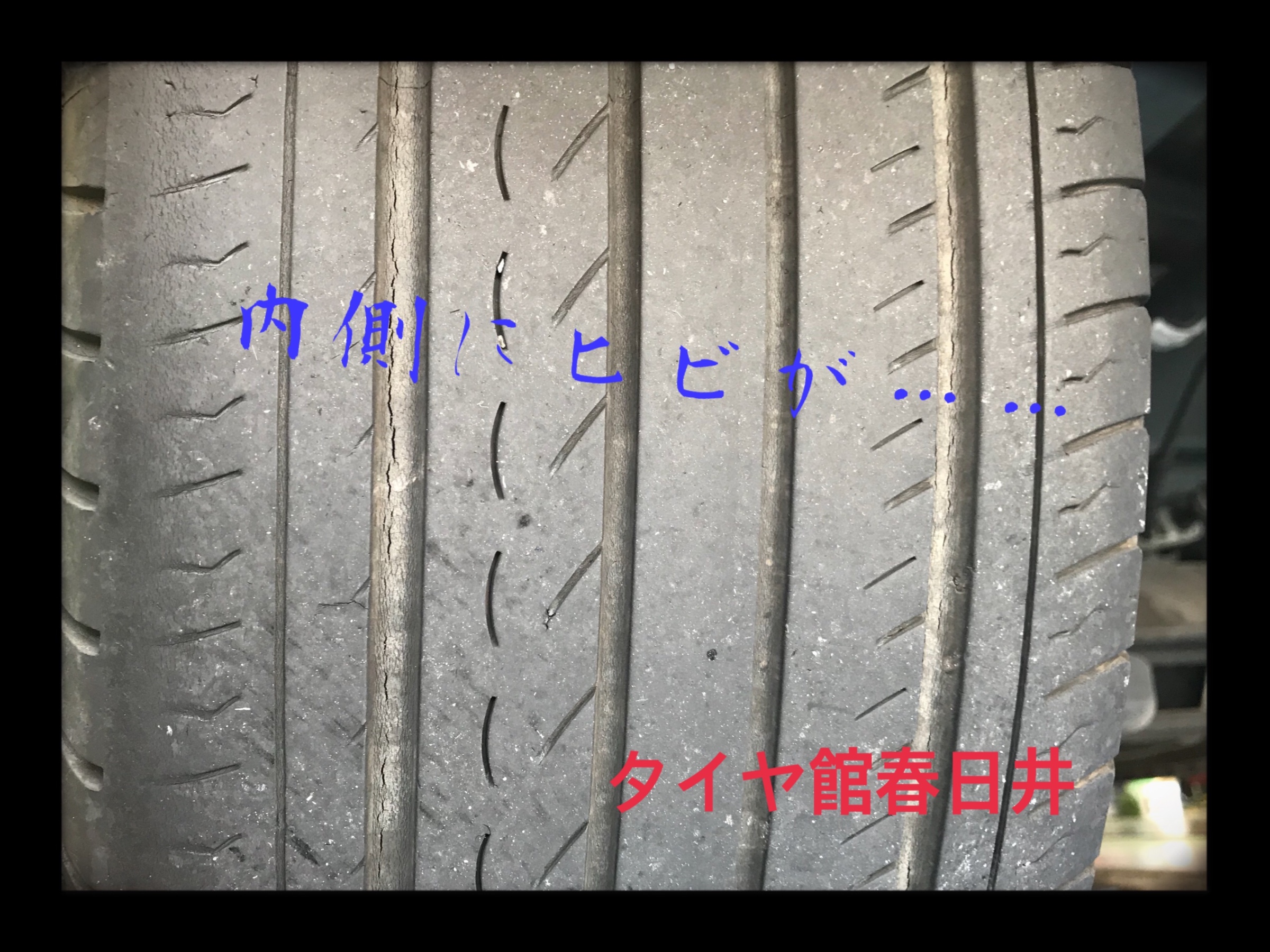 ヒビが、タイヤのミゾの中に入っています。