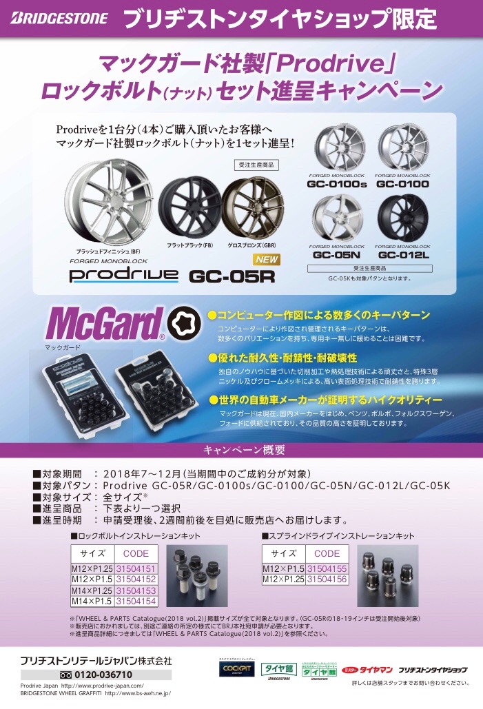 いつもご利用頂きありがとうござます。只今ブリヂストンタイヤショップ限定企画として、対象商品をご購入で、「マックガードホイールナット(ボルト)」をプレゼントしています。ご購入予定の方もこの機会に是非ご利用ください(^ ^) 詳しくは専用サイトにも詳細があります。