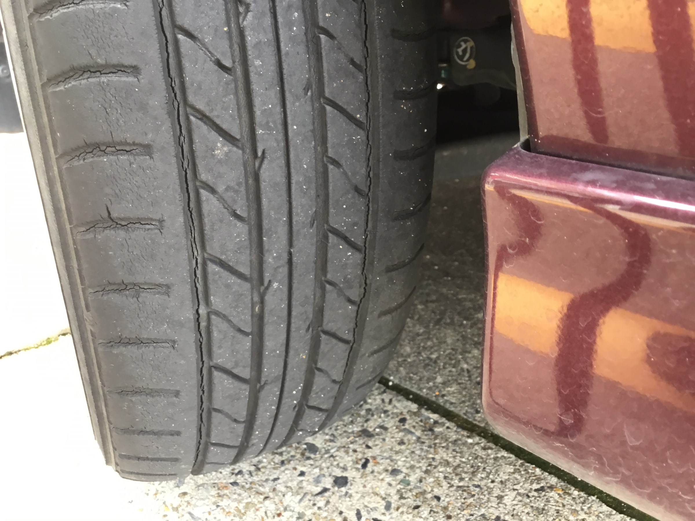 タイヤのサイドと溝の中はゴムが薄いので注意が必要です。
