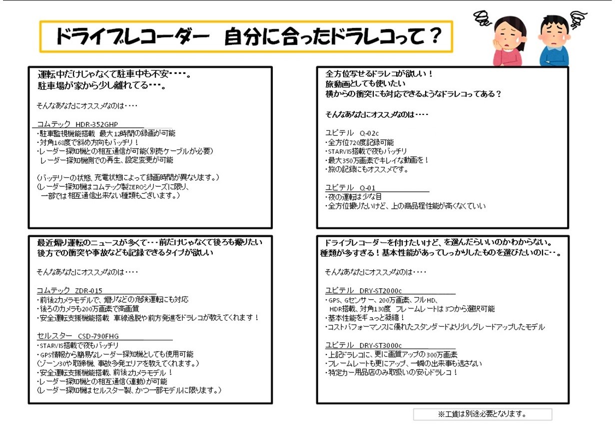 一概にドラレコが欲しい!といっても、