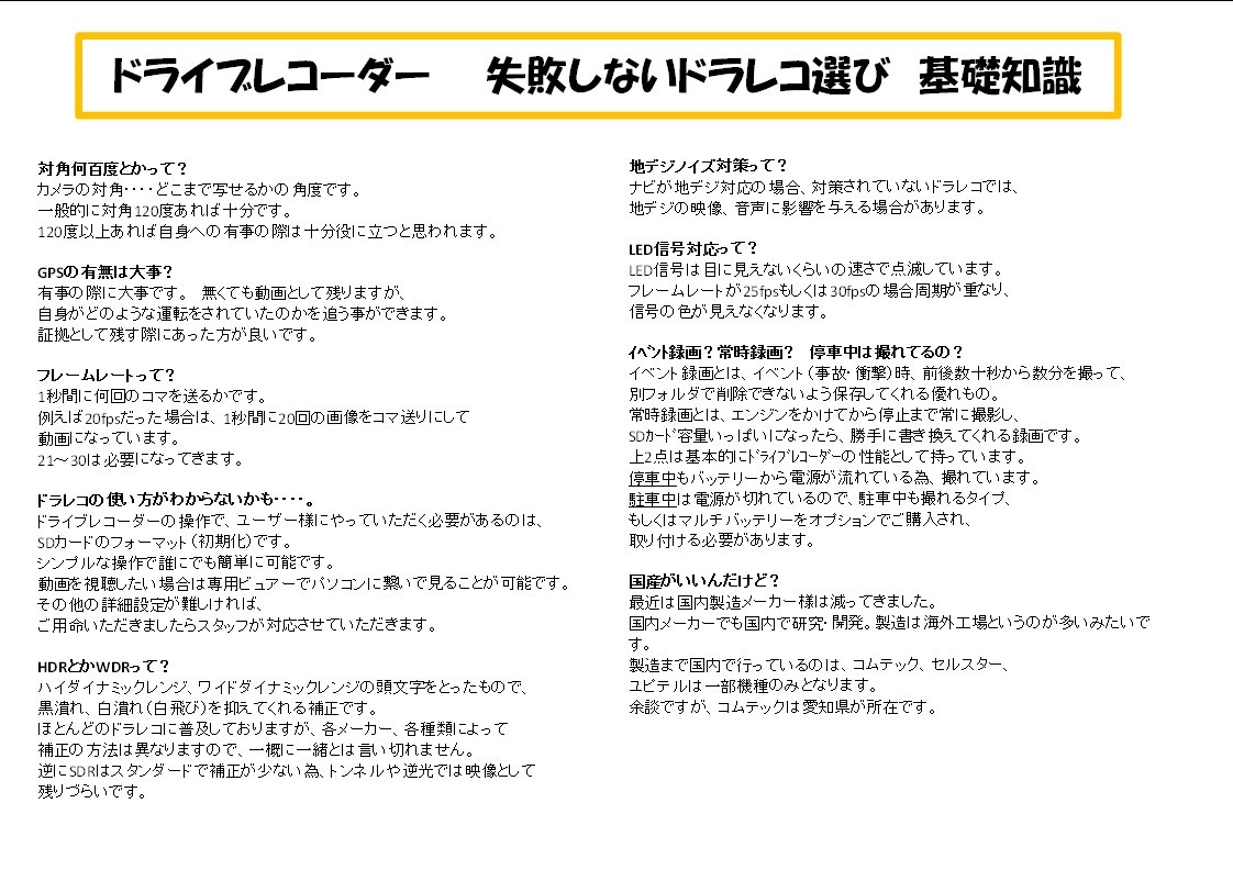 ドラレコ 選び方と基礎知識