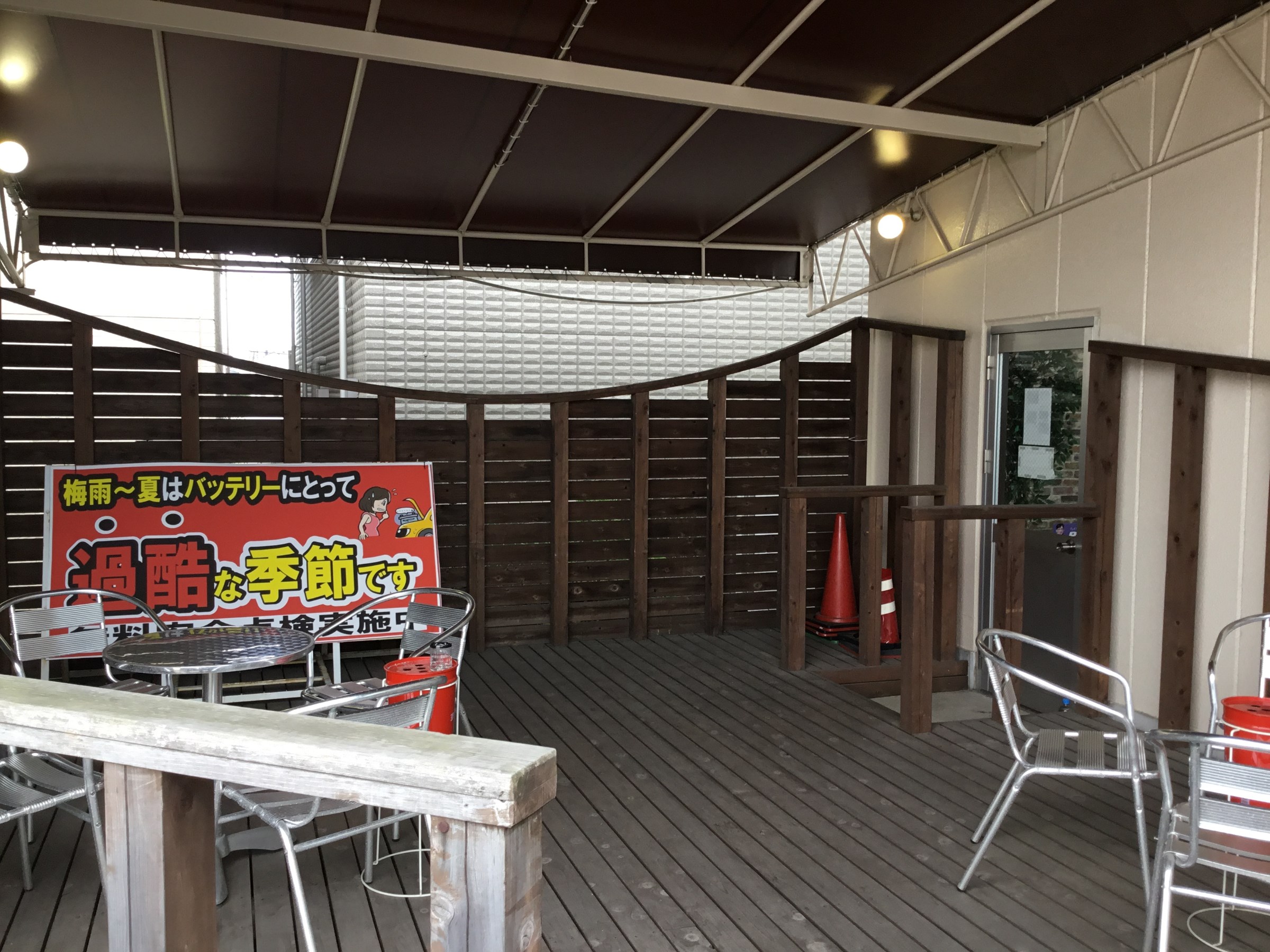 喫煙コーナーは店外の自動ドア横に設けさせていただいて