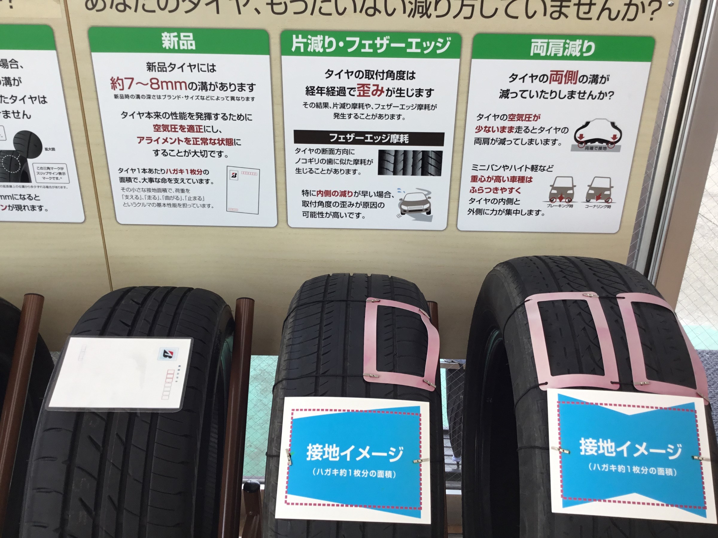 タイヤの状態はしっかり点検させていただいているのですがもったいない減り方している方をしばしば見かけます。