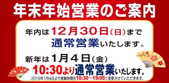 今年の営業は12/30(日)までとなっておりますのでよろしくお願い致します。