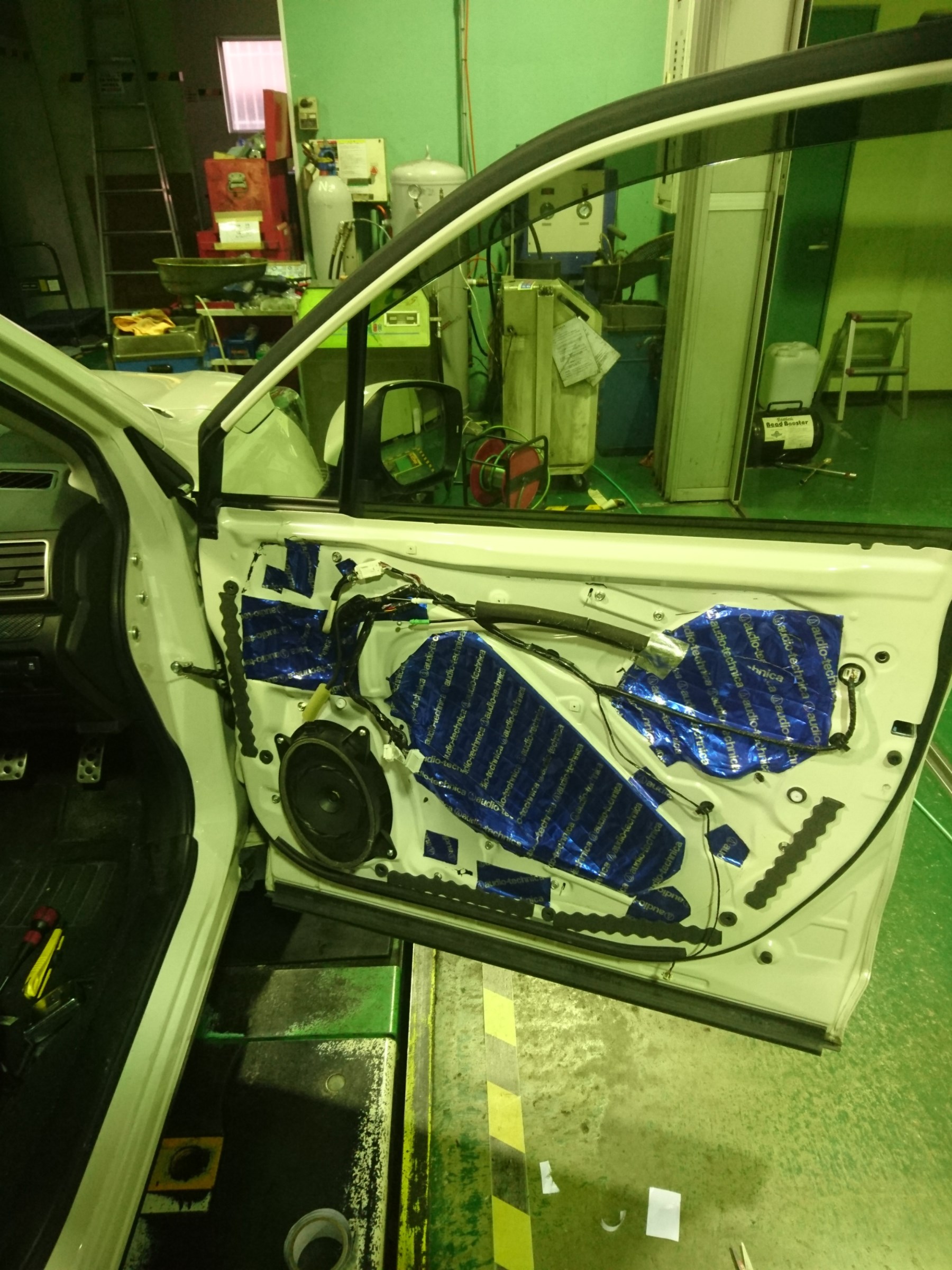 少し制振シートを剥がしたり、穴をあけたりして調整していきます。