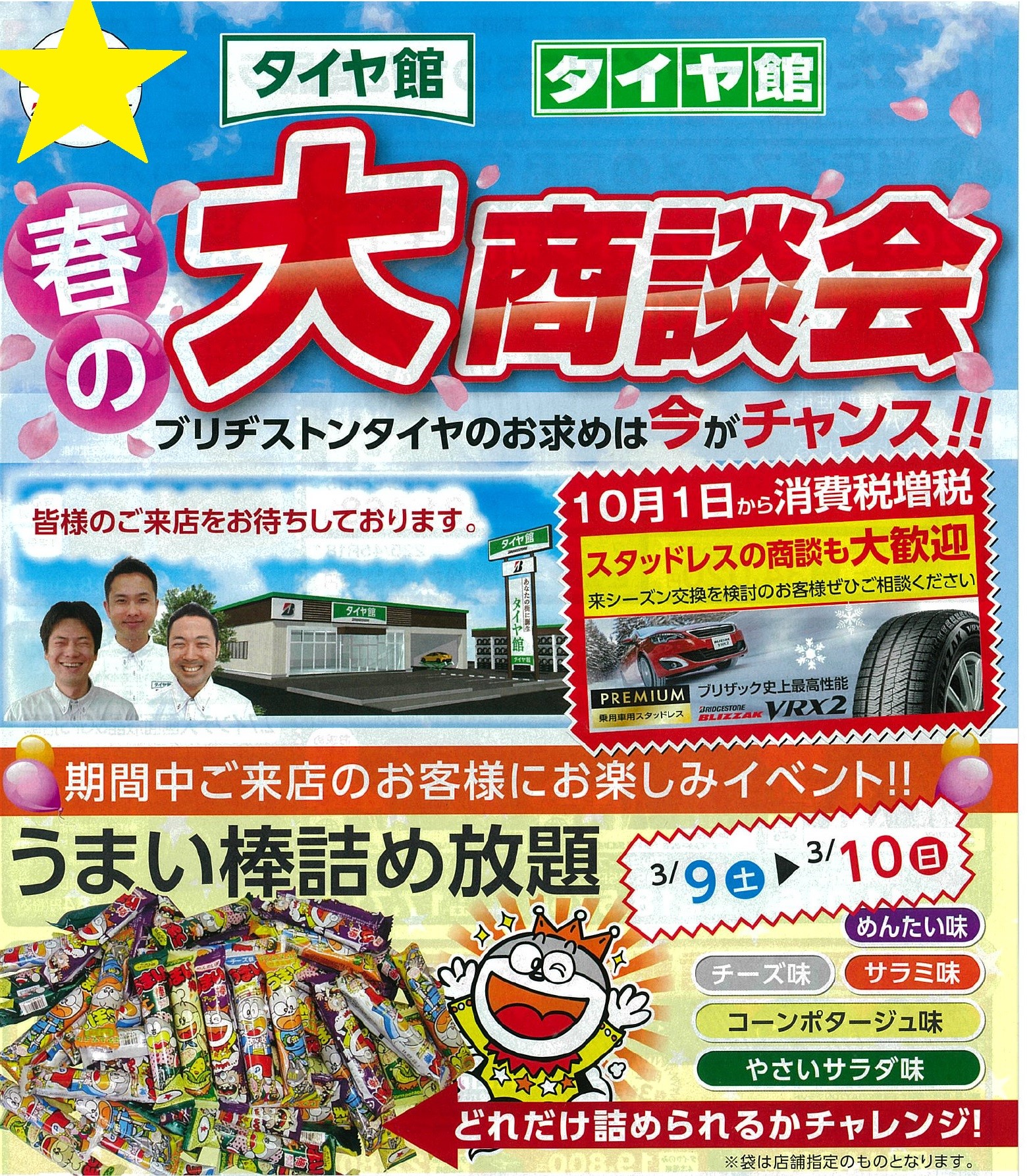 こちらは、3/9(土)から3/17(日)の1週間やりますのでタイヤ買い替えや履き替えに方はぜひご利用お待ちしています!