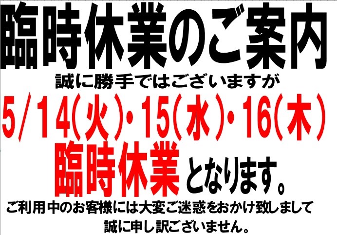 臨時休業のお知らせ
