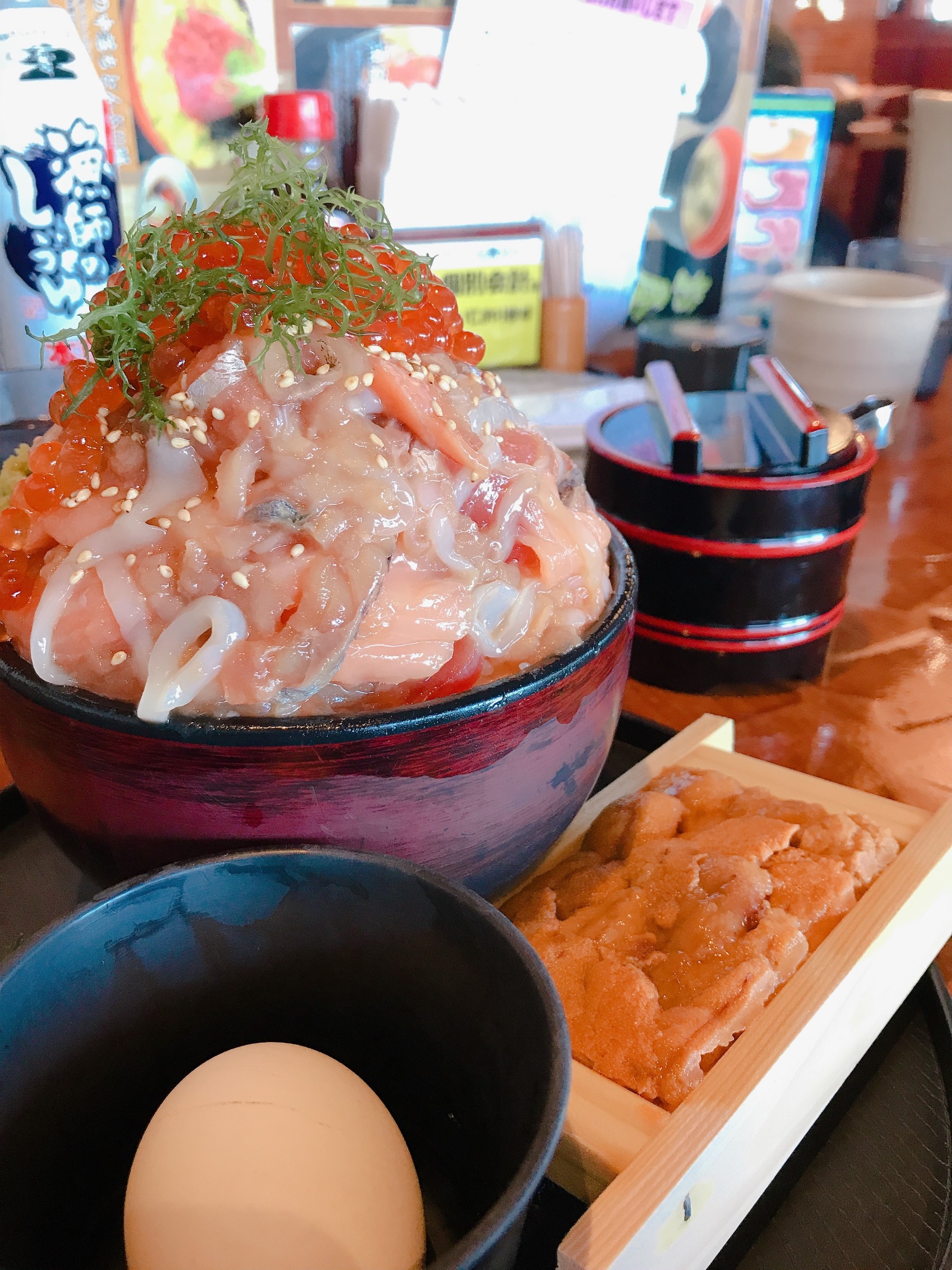 旅行で食べた海鮮丼がすごかったので写真載せておきます(^^)