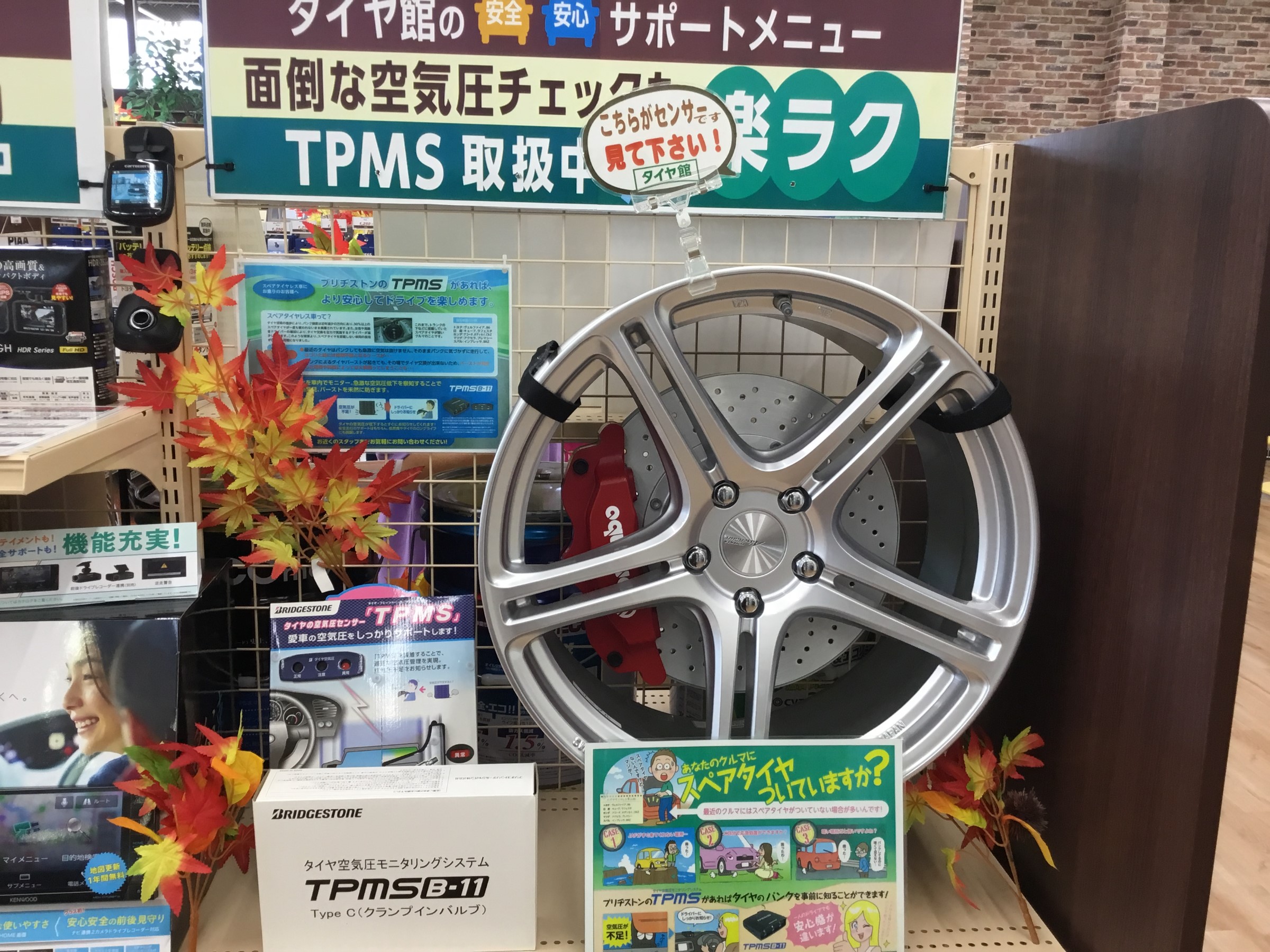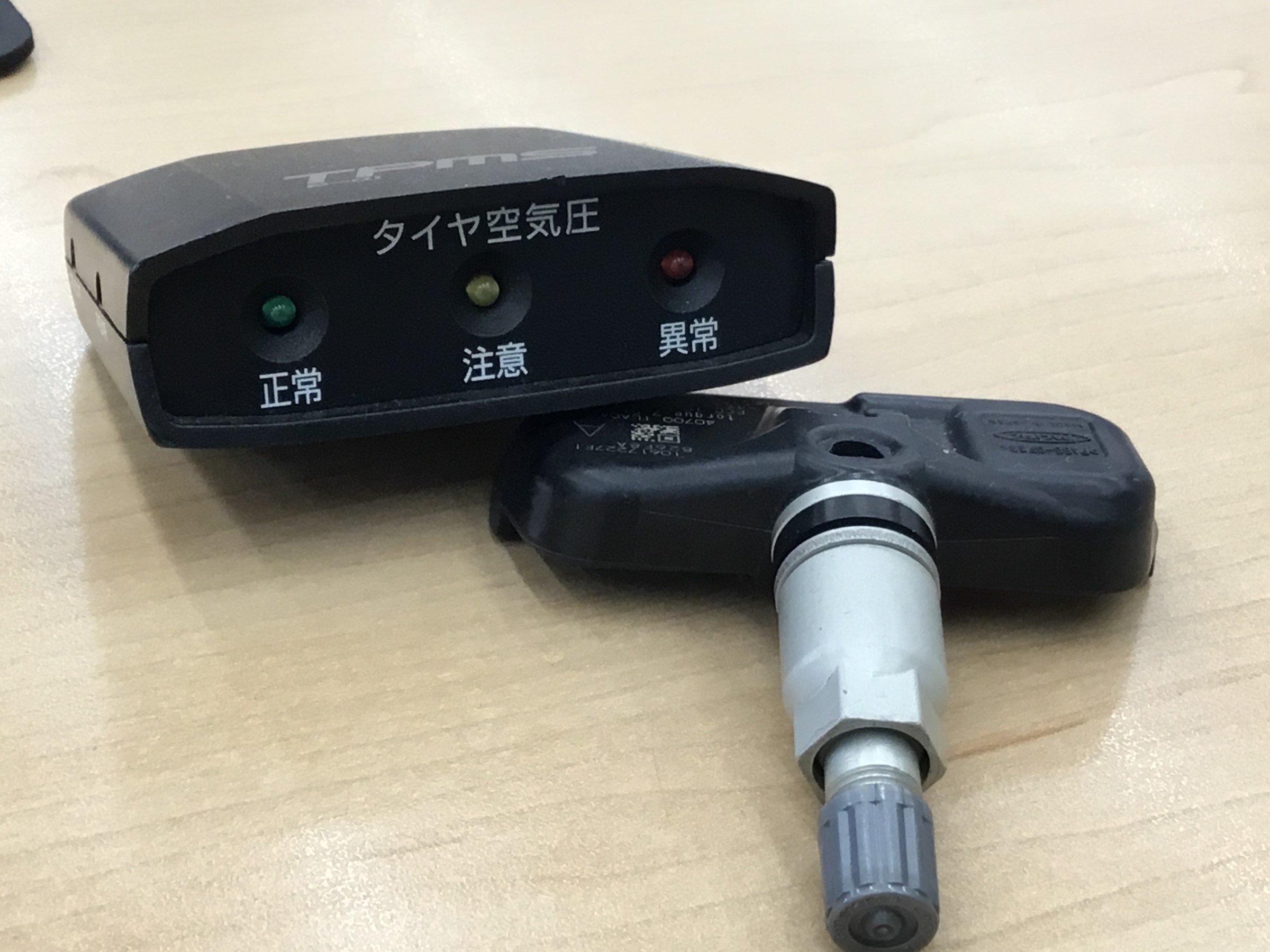 ホイ-ルに取り付けられたセンサ-でタイヤの空気圧を検知し、車内へ取り付けられた受信機へ電波で圧力値を送信します。