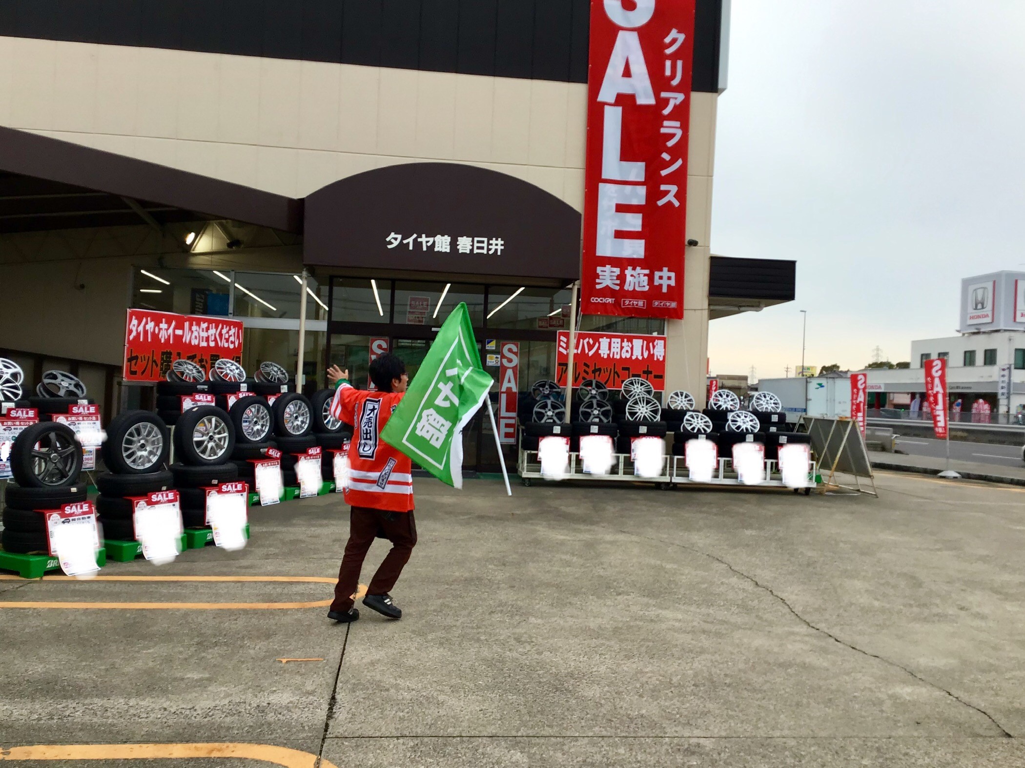 タイヤ館、春日井店です。