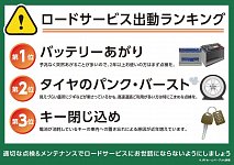 こんにちは、関口です。 これから梅雨シ-ズンがやってきます。 梅雨が明けたら、夏です! お出かけになられる機会が増えてくると思いますが、お出かけ先での急なトラブル嫌ですよね・・・ ★こちらはロ-ドサ-ビス出動ランキングです★ やはり多いのは1位のバッテリ-あがりです(>_<) バッテリ-あが...