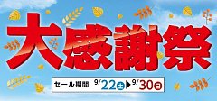 こんにちは、9/22から9/30まで開催していました大感謝祭は本日で終了致しました! 大型の台風24号がこれからやってくるみたいなので、皆様、お気を付けくださいませ。