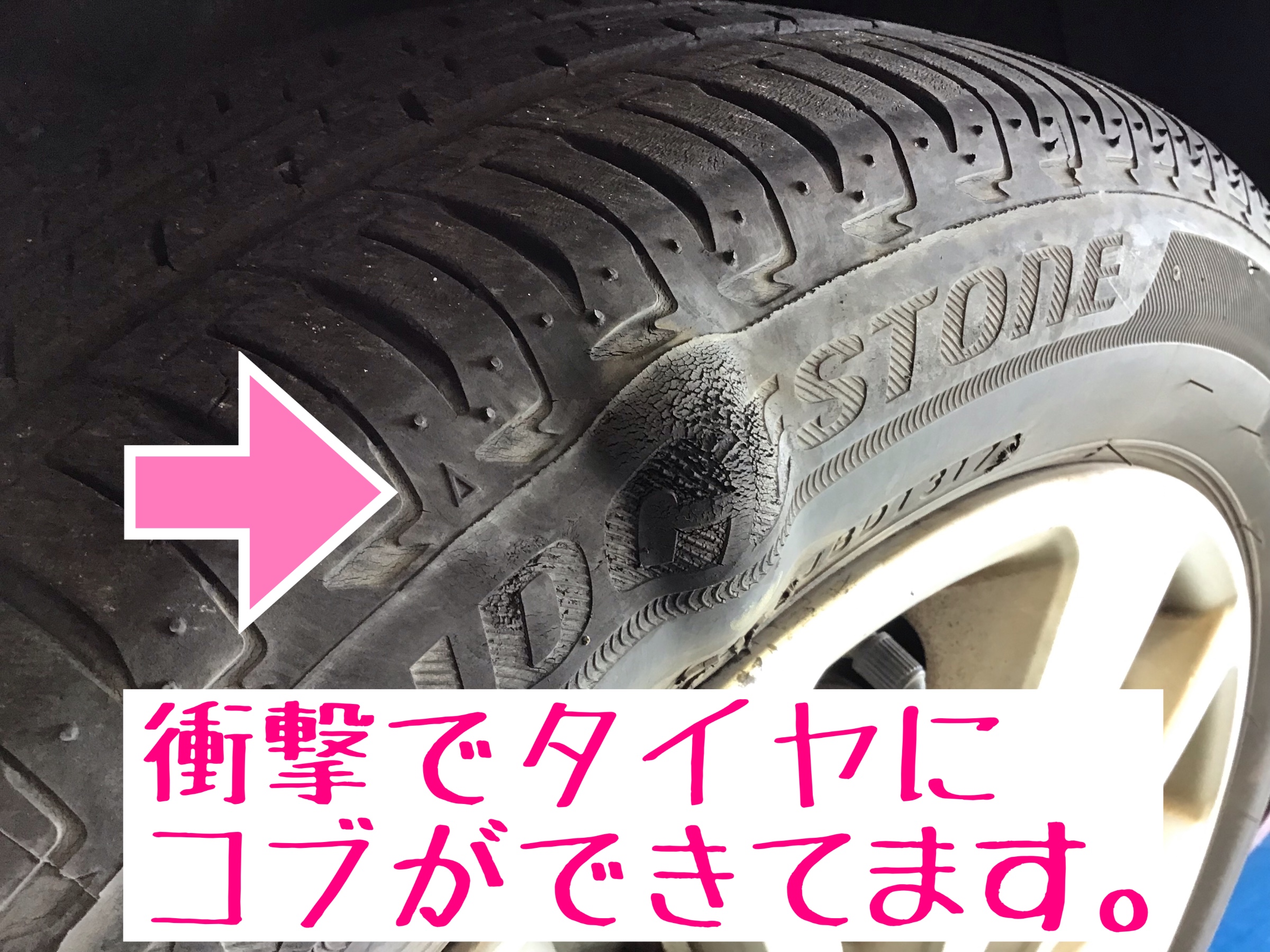 今回のタイヤ交換は縁石乗り上げによりタイヤが損傷してしまったことによる物です。