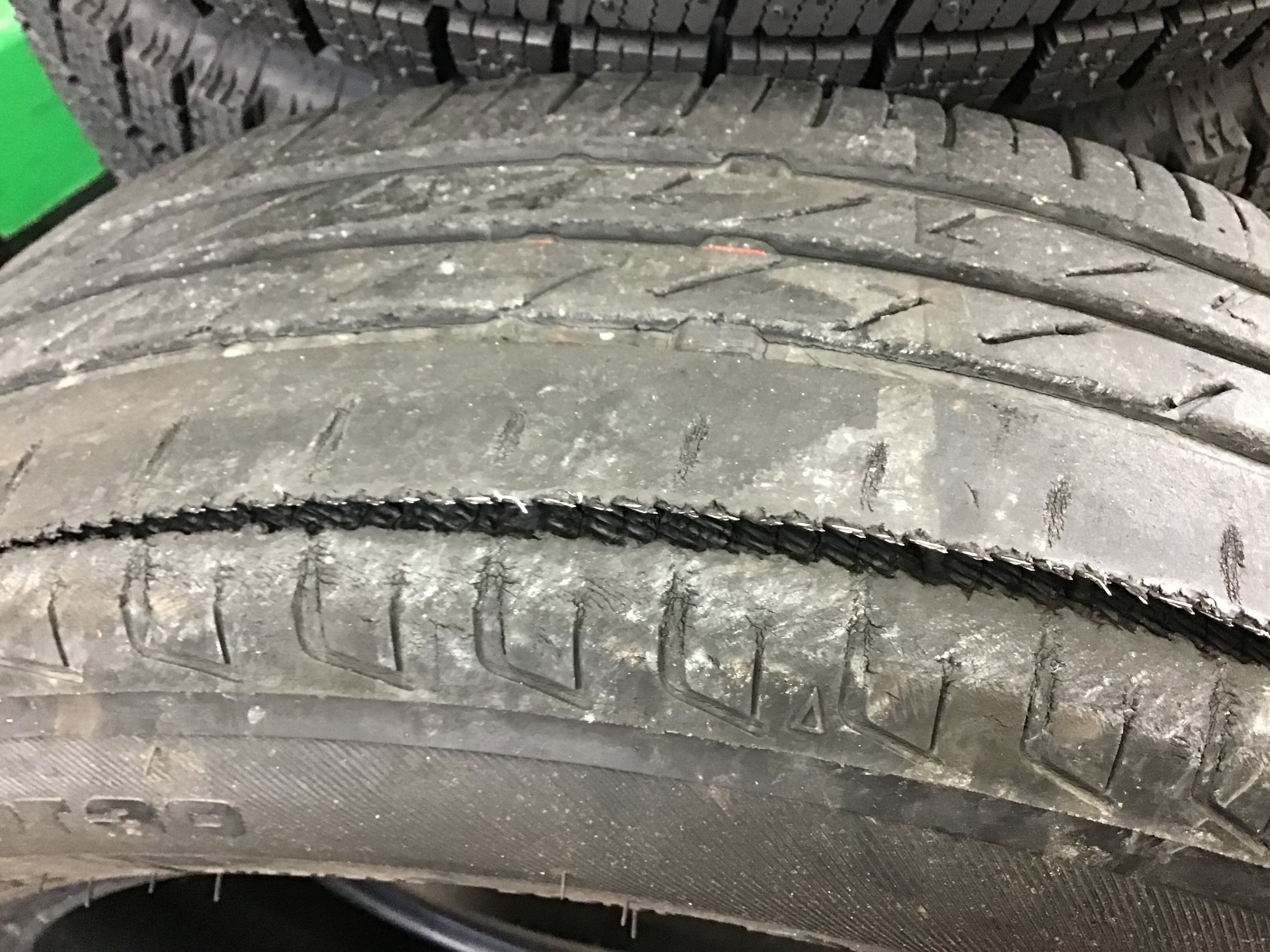 細かいハンドル操作が多いとのことで、タイヤの外側が極端に減ってしまい、また、その影響でトレッド面が剥がれてきてしまっています。