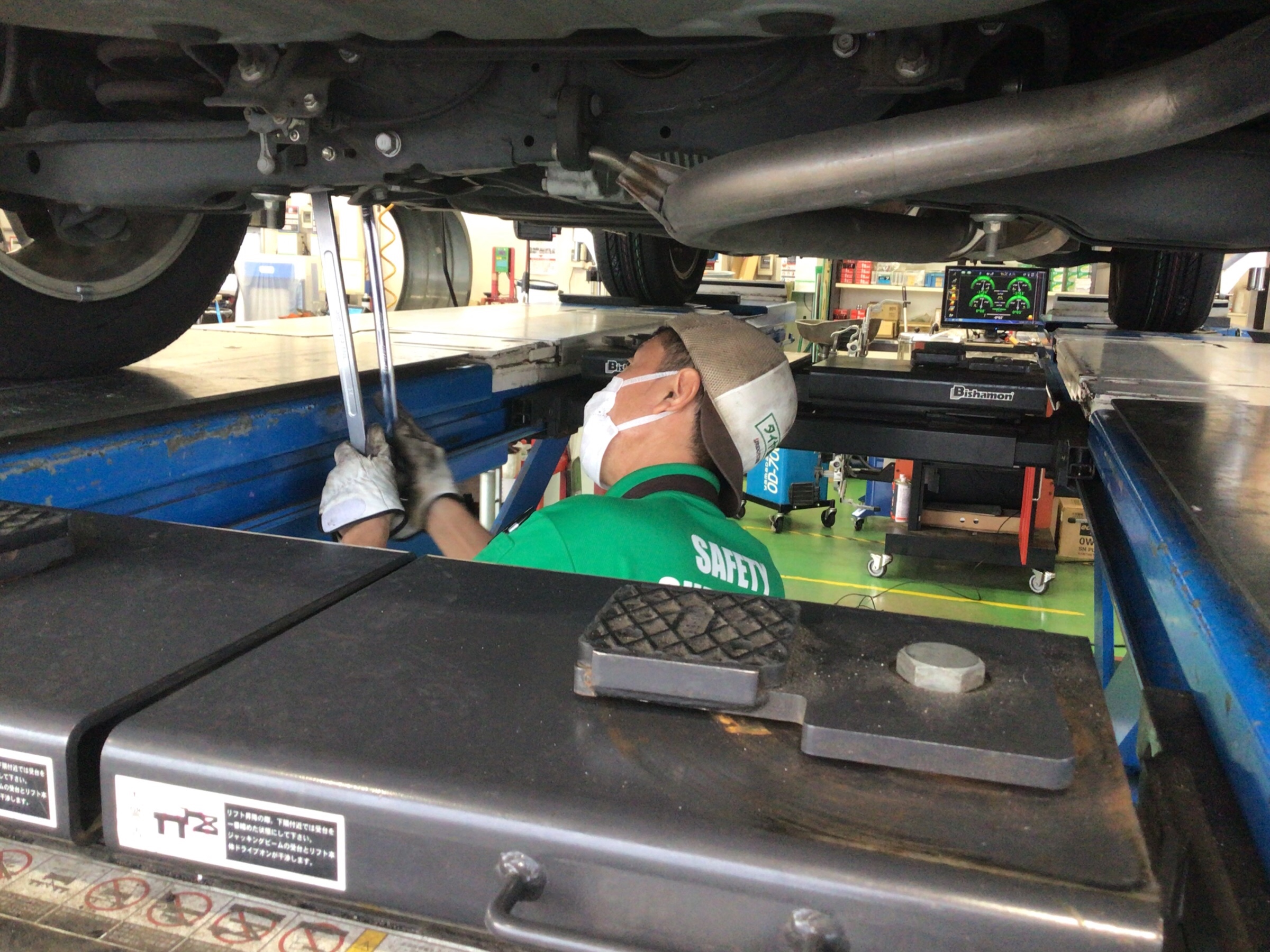 今回作業しているのは百瀬スタッフ!アライメントのプロです!
