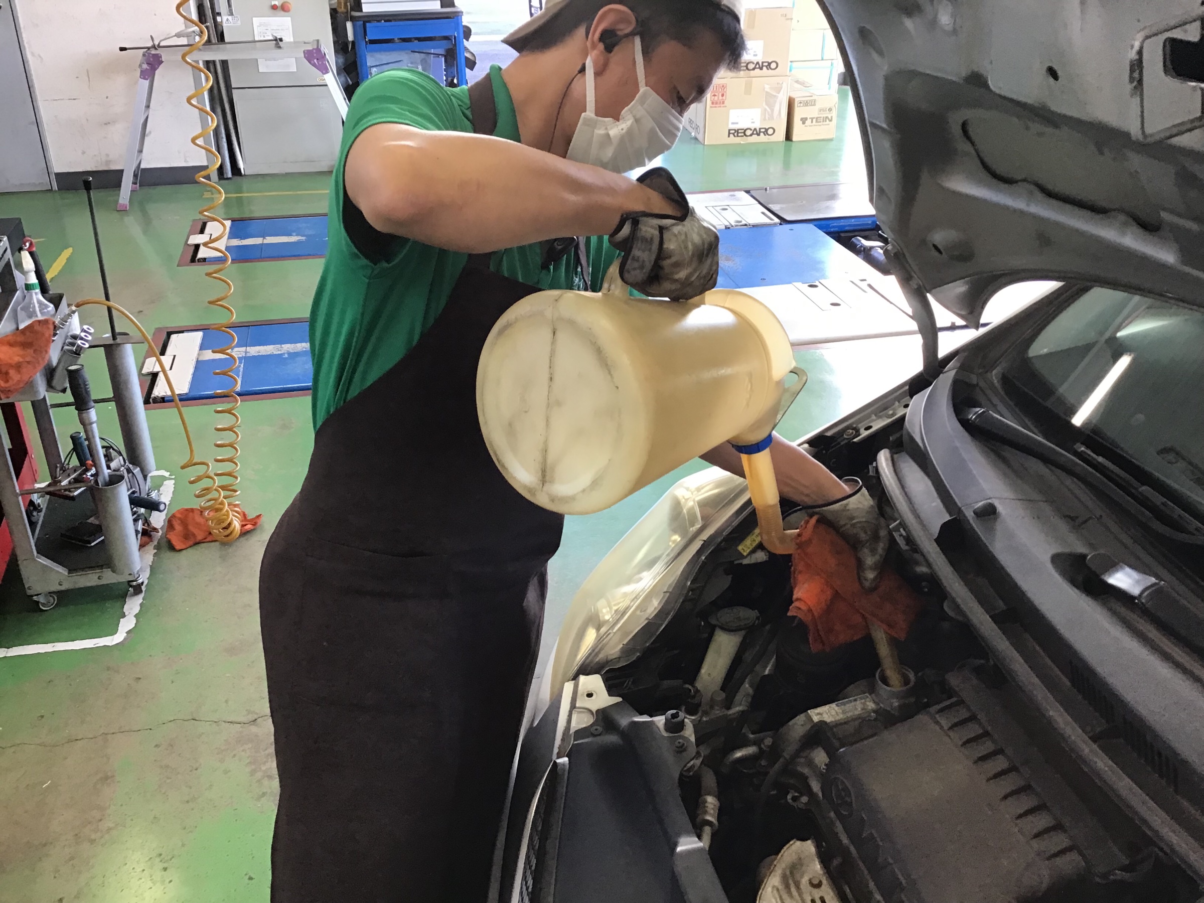 専用の上抜きマシンでキレイに抜き取ってから新油を入れていきます。