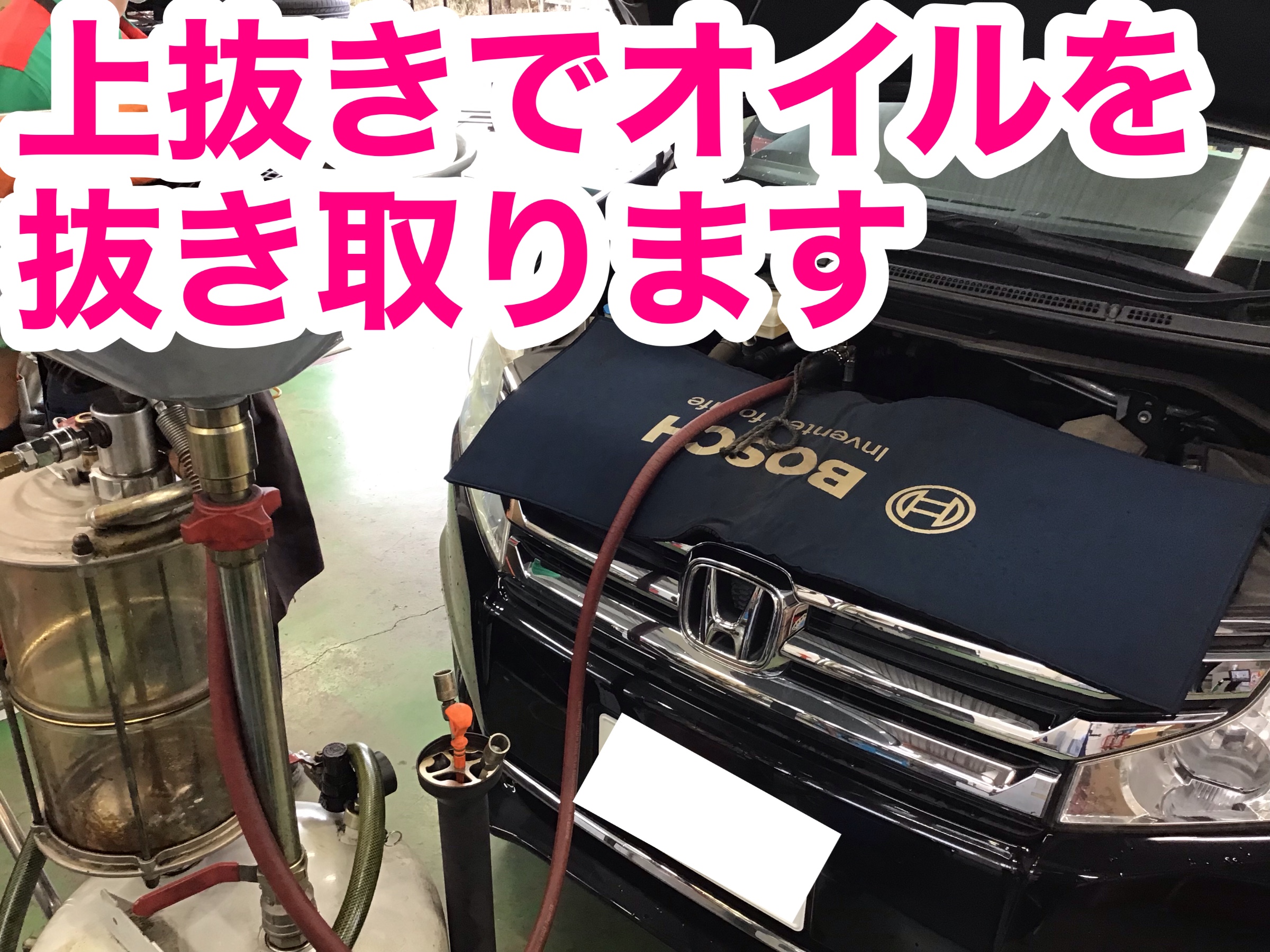 今回もオイル交換は上から古いオイルを抜く上抜きにて作業していきます。