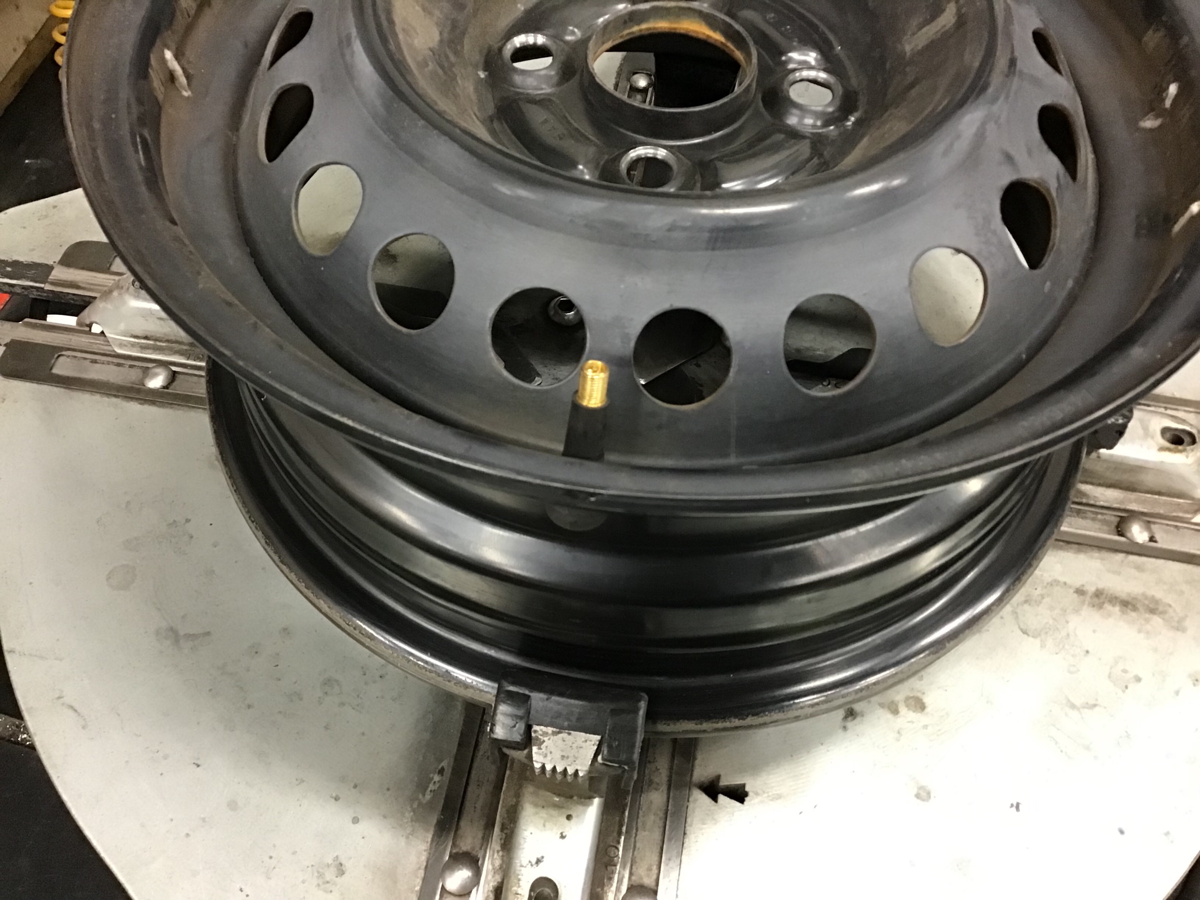 ホイールの『リム』を掃除し、ゴムバルブを新品に交換します。