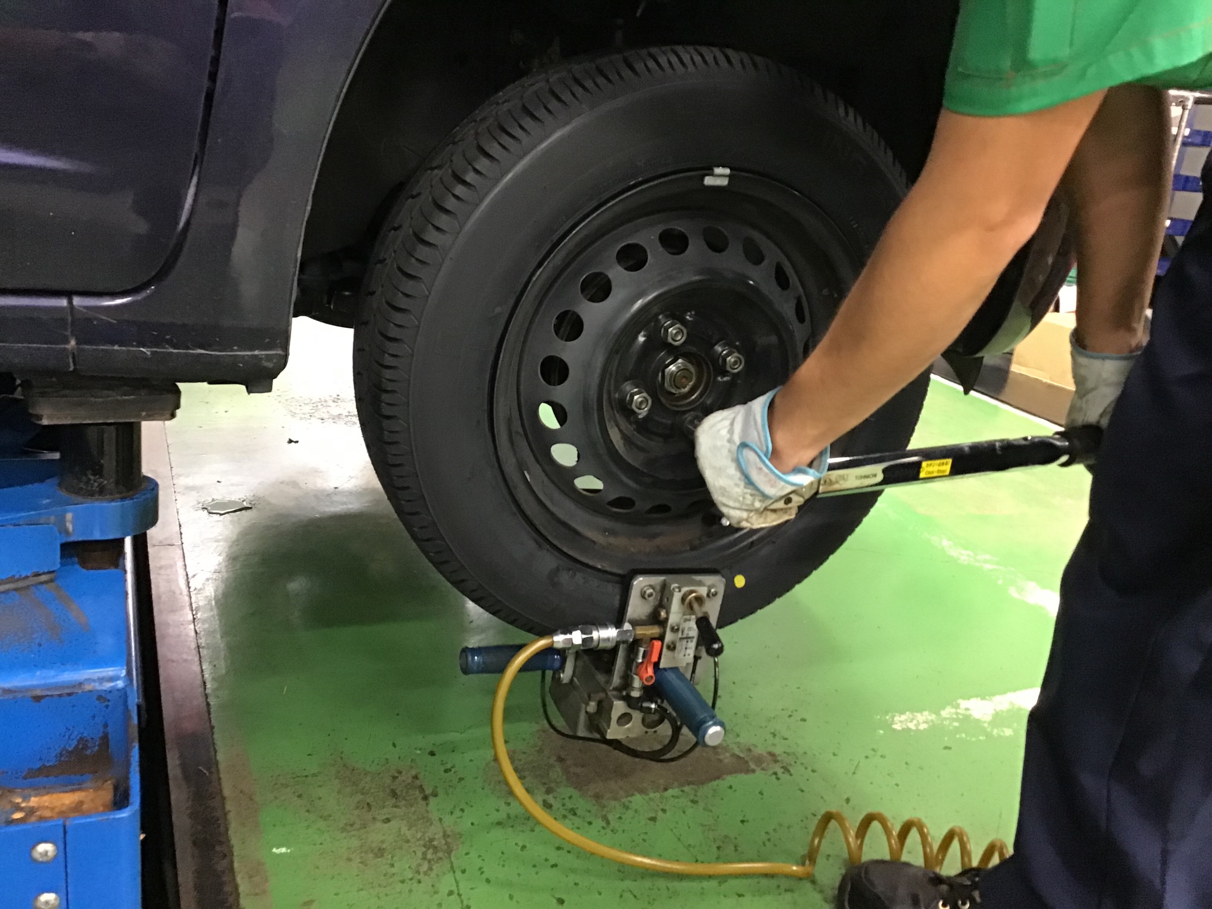 車両メーカー毎に決められたトルクでナットを締め付けていきます。