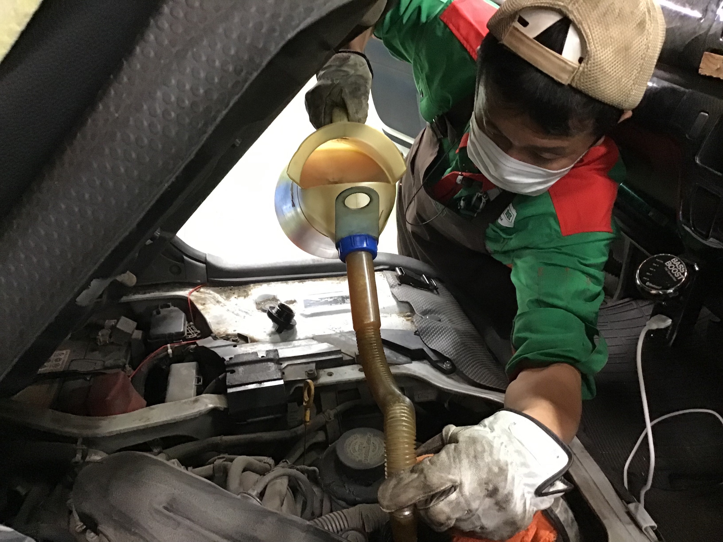 トヨタの働く車、ハイエースでオイル交換を実施です。