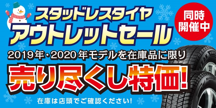 同時開催でスタッドレスタイヤのアウトレットセールも開催されます!!