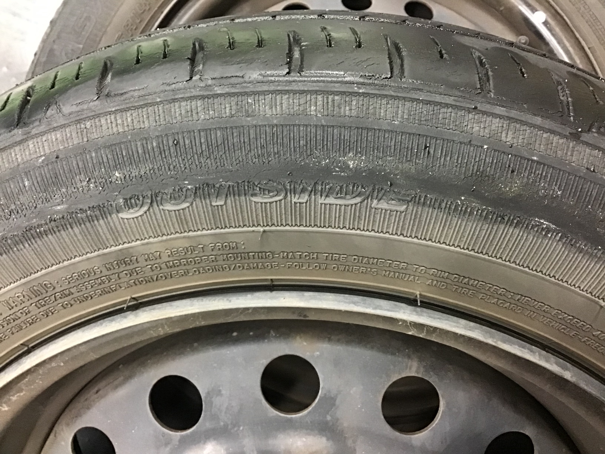 タイヤの内側がボロボロになってしまい、タイヤカスがいっぱい出ていますね。