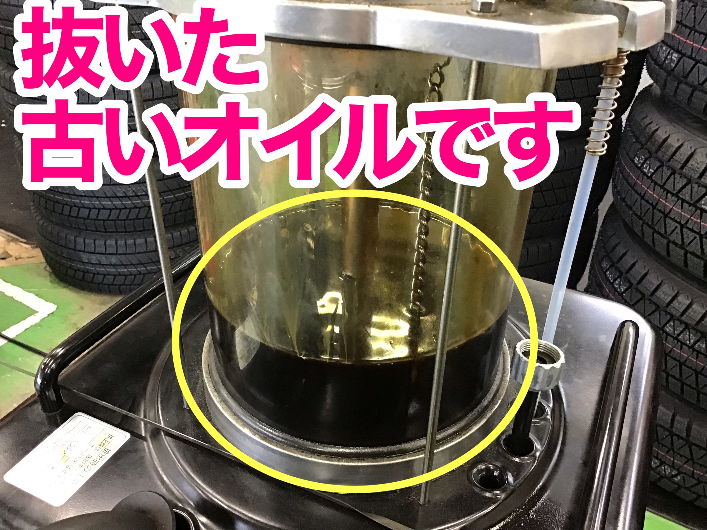 抜いた古いオイルはこちらのタンクに蓄積していきます。
