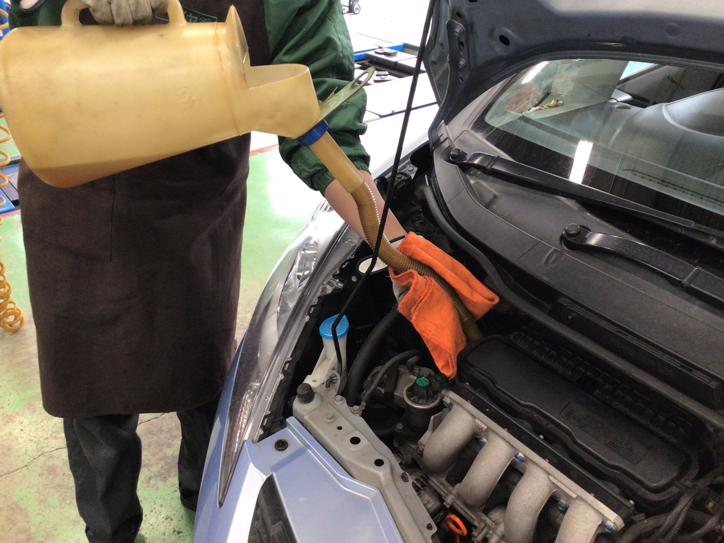 ホンダ『フィット』でオイル交換を実施中です!